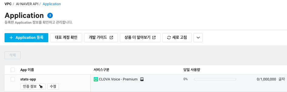 그리고 CLOVA Voice를 선택해주시고, 등록 버튼을 눌러줍니다.