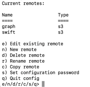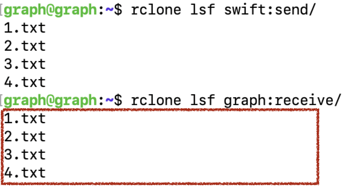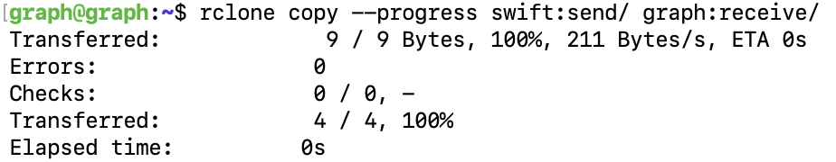 swift라는 리모트 내에 있는 send 버킷의 4가지 파일을 복사하여, graph의 receive 버킷으로 전송해보겠습니다.