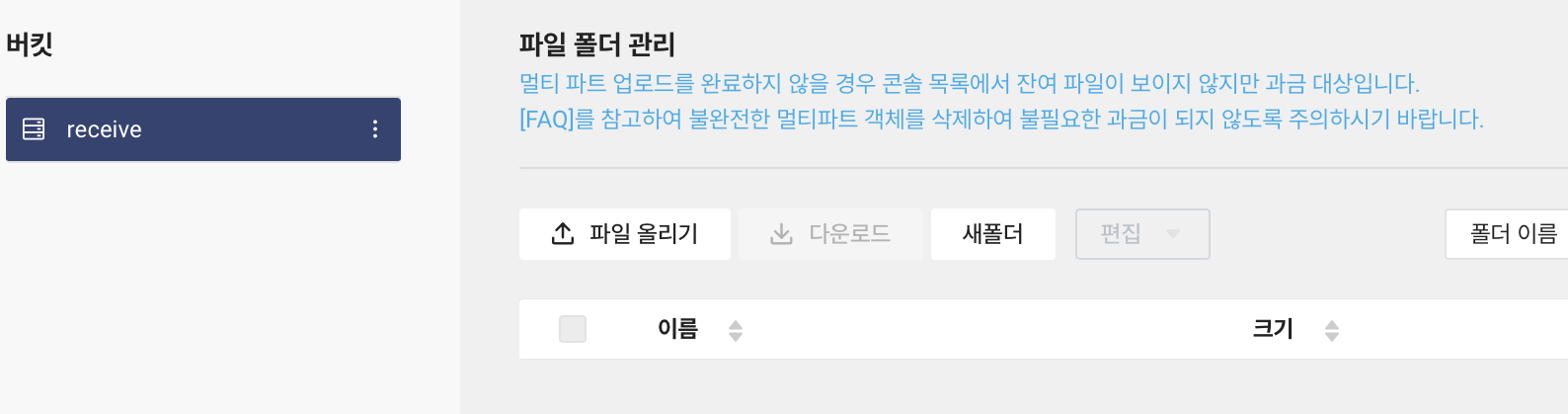 같은 원리로, graph에 있는 receive 버킷을 확인합니다.아무것도 들어있지 않습니다. 비어있네요.