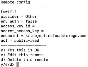 찾아보니 유명한 클라우드나 서버 스토리지 혹은 Local에서 파일 전송 도구라고 합니다. 간단한 명령어로 다른 두 네이버클라우드 계정이 소유한 버킷 간 파일 전송을 시도해보기로 했습니다.