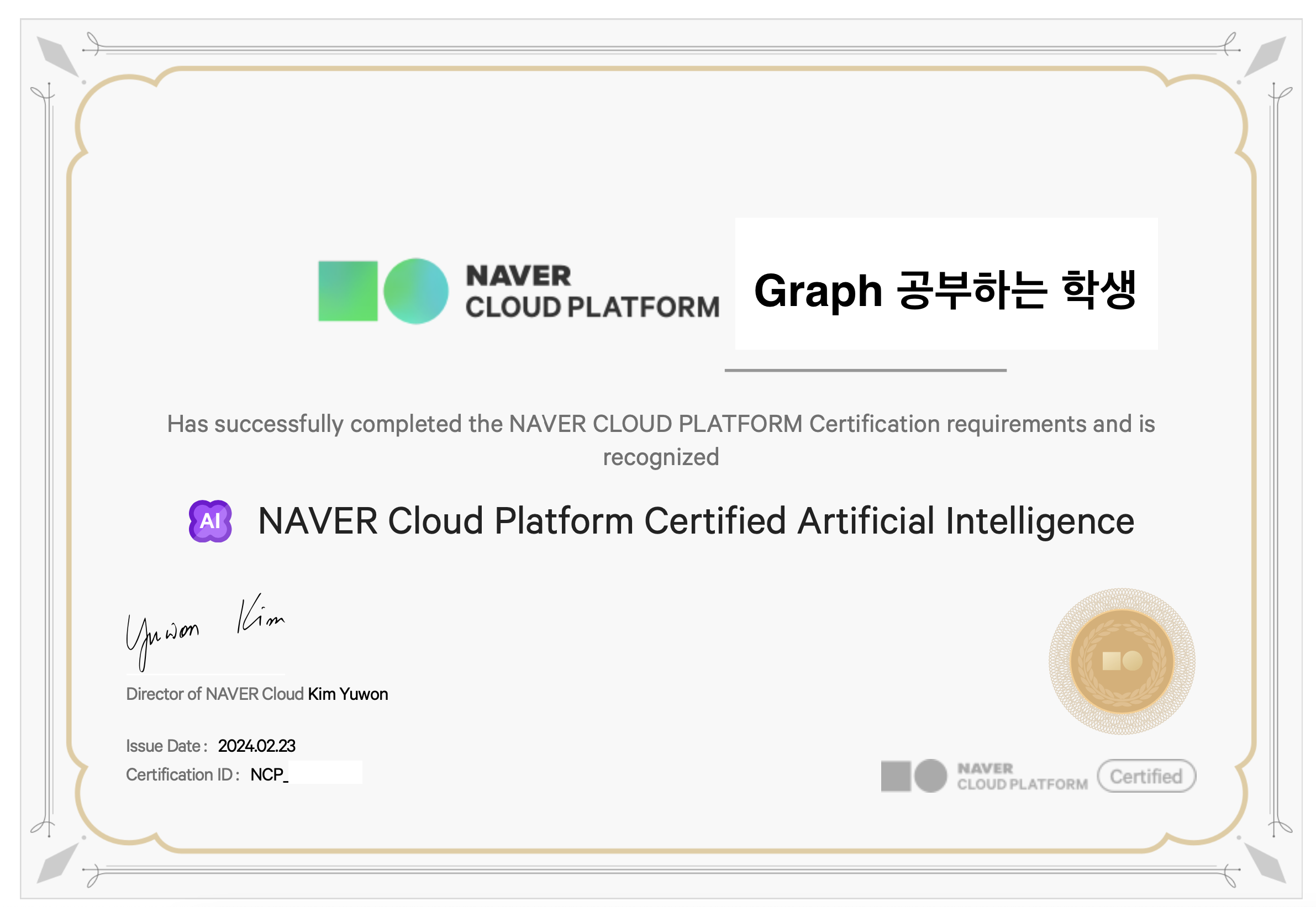 올해 2월 22일 자로, NAVER Cloud Platform Certified Artificial Intelligence 줄여서 NCAI에 합격했습니다. 1월 정도에 새로 나온 자격증인데, 이렇게 새로 나온 자격증이므로, 관련 정보가 거의 전무하여 공인 교육을 듣지 않으면 쉽게 통과하기 어려워 보였습니다. 실제로 한번 떨어지고, 다시 준비해서 붙을 수 있었습니다. 간단히 후기를 남겨보겠습니다.