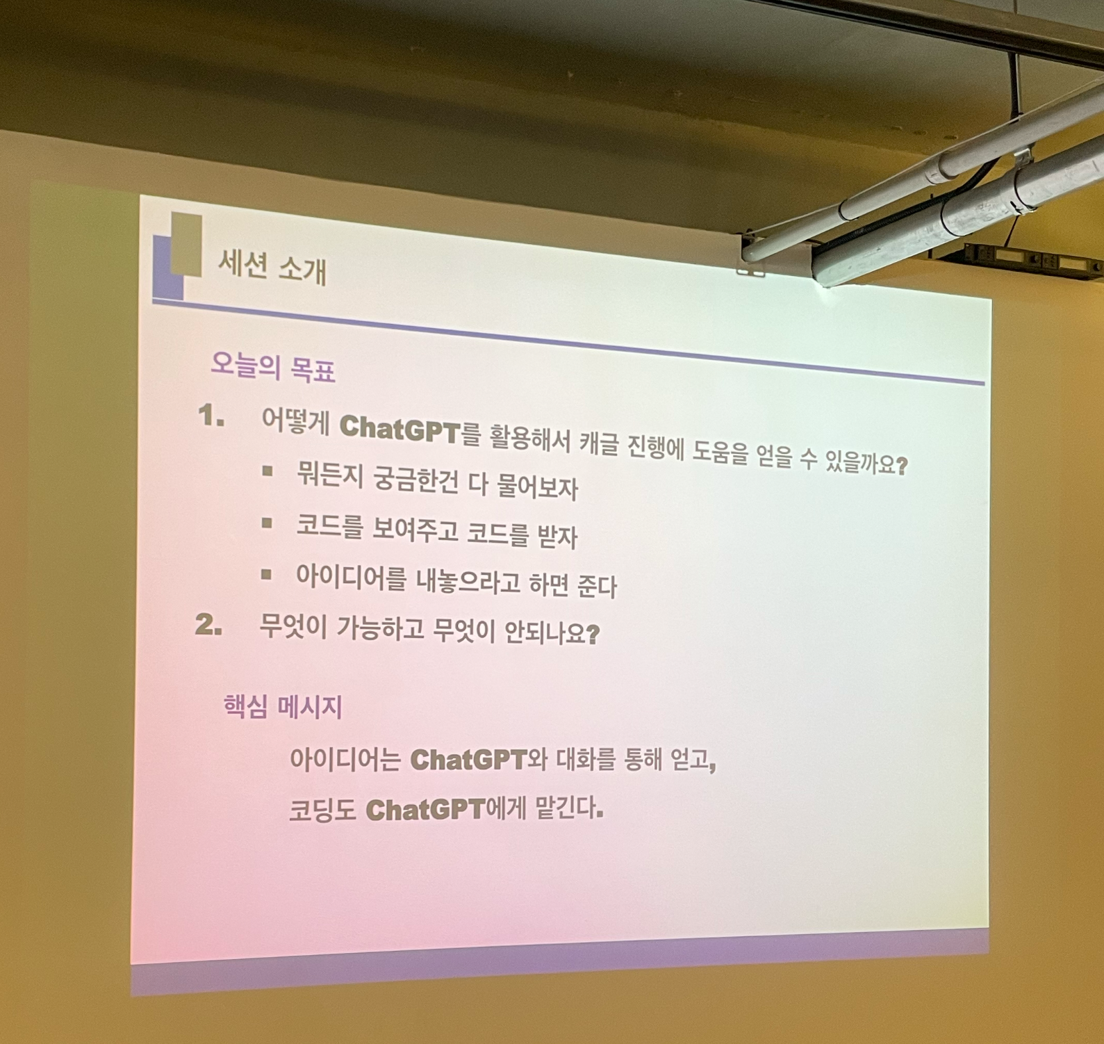코드를 보이고 코드를 받아낸다. 아이디어 내놓으라 한다.