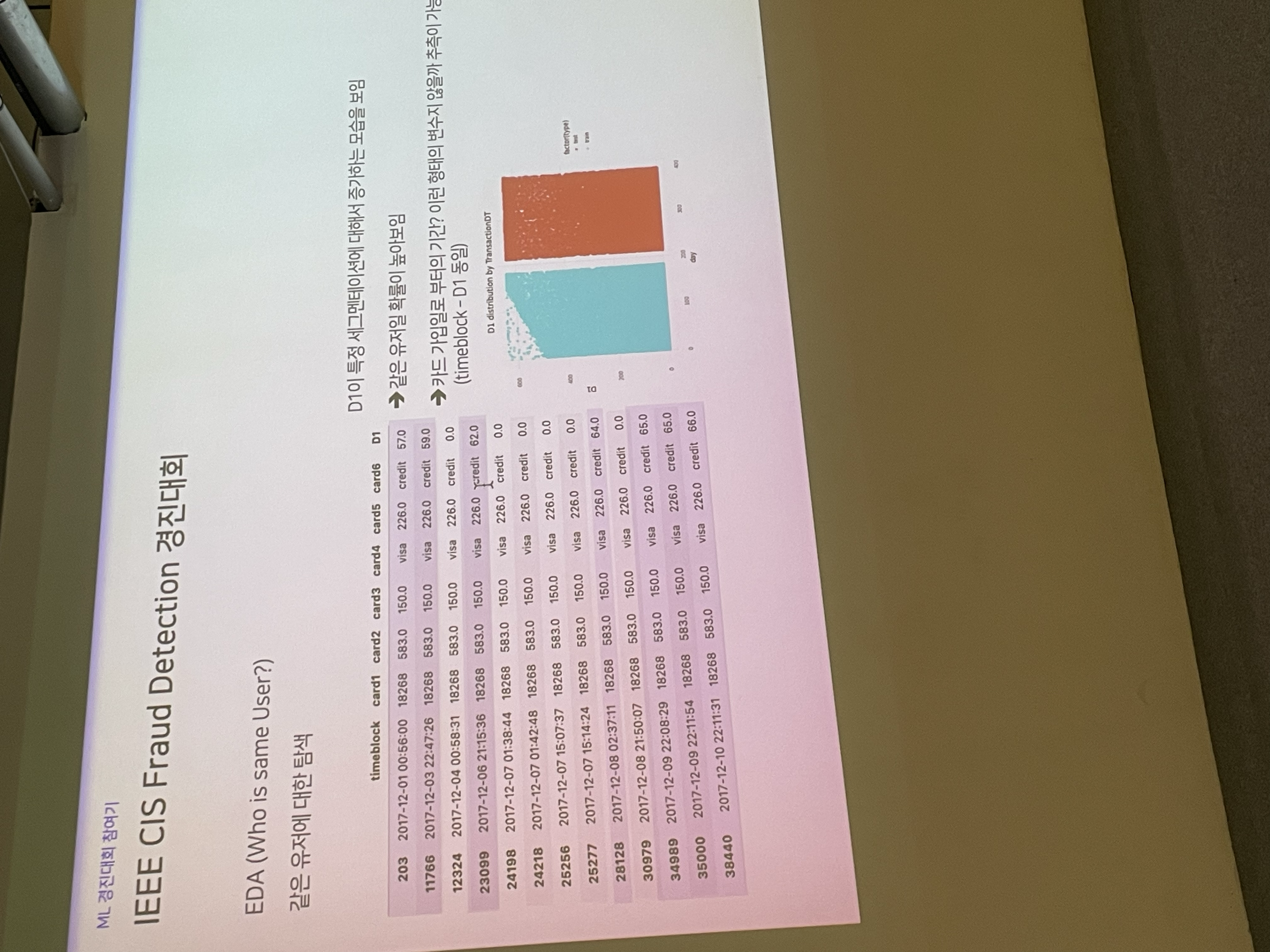 6개 value가 isfraud가 1인 사람이다. 보라색으로 칠한 사람만 봤을 때, time D1을 보니, 실제 timeblock과 함께 이동한다.