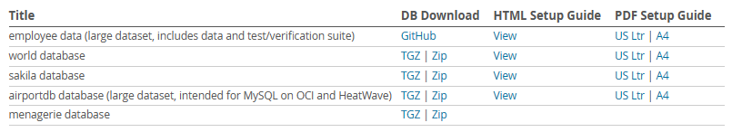 여기서, sakila database의 TGZ (tar.gz) 파일을 내려받습니다.