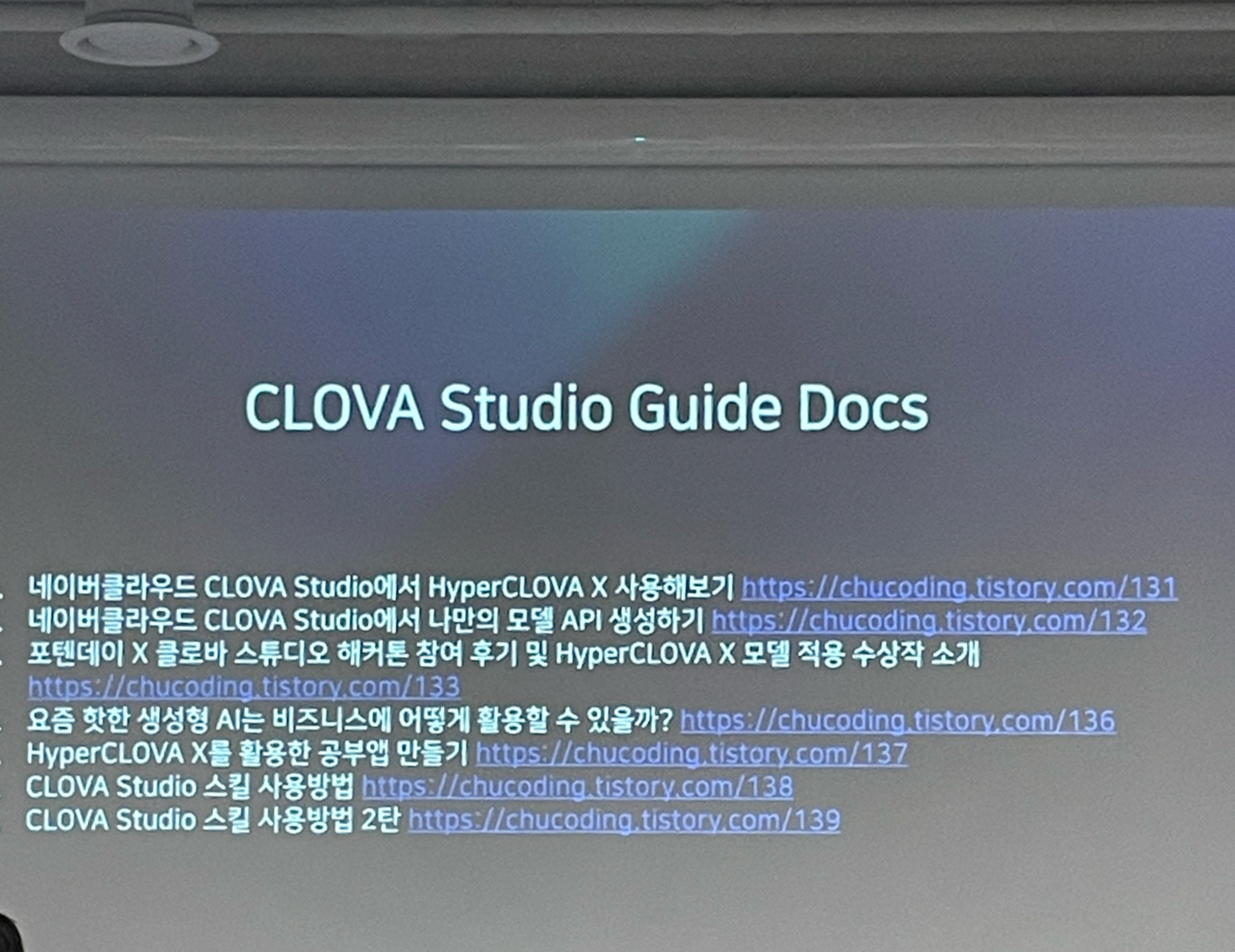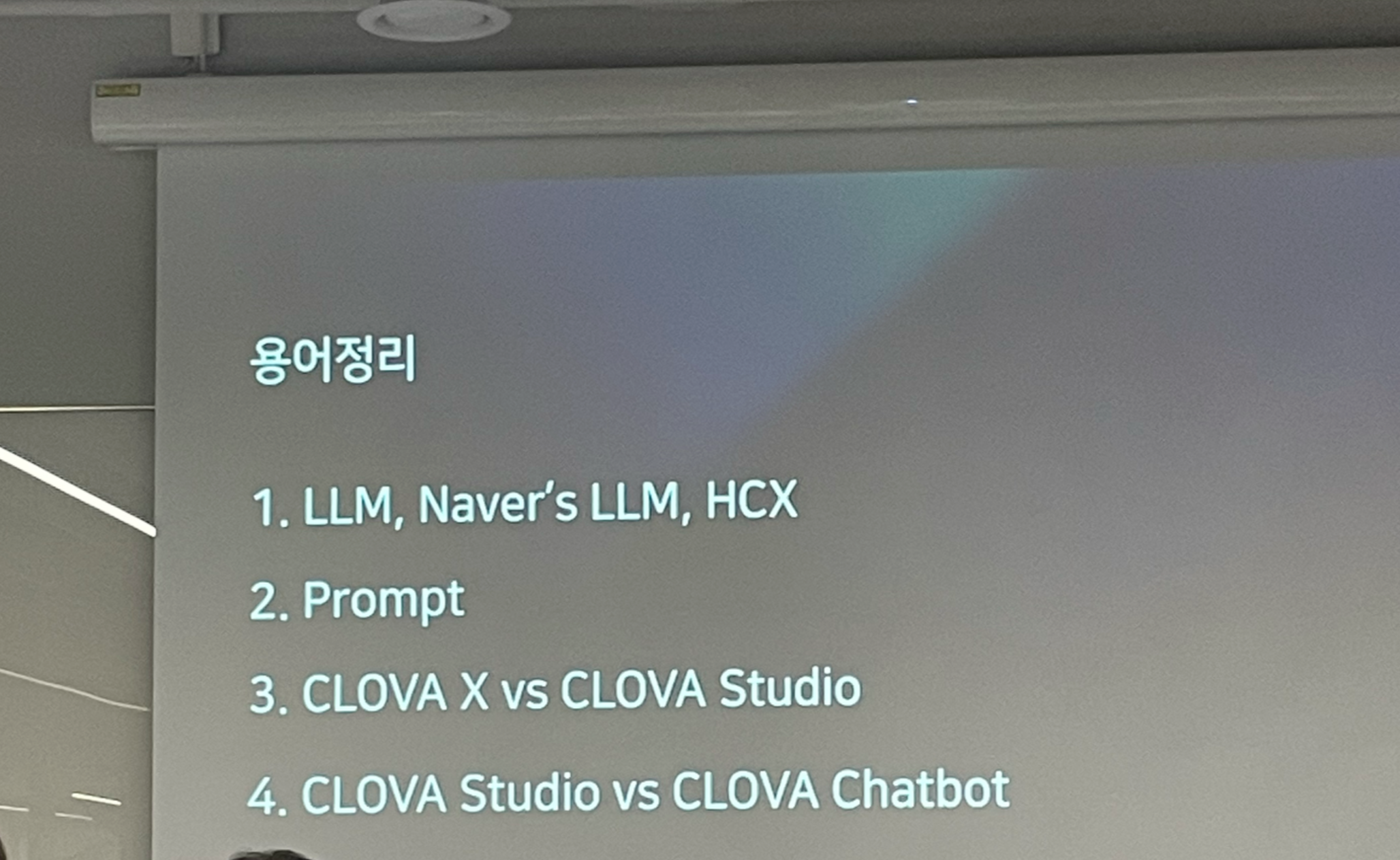간략하게 LLM(대규모 언어모델), 네이버의 LLM, HCX부터 클로바 스튜디오와 챗봇 비교 이야기로 시작했습니다.