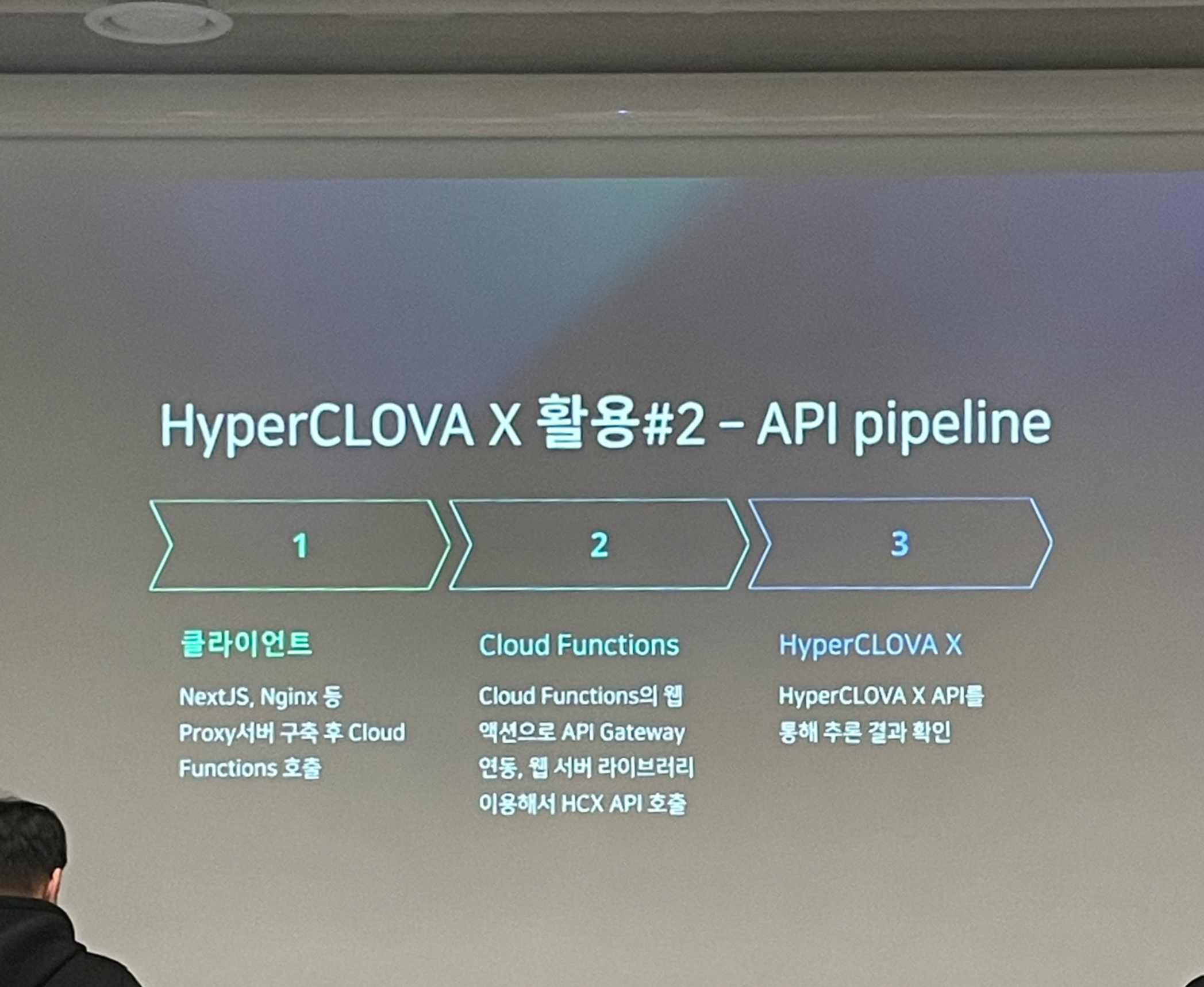하이퍼 클로바를 클라우드 펑션에서 하이퍼콜로바 X를 호출해볼 수 있습니다. API pipeline은 아래와 같습니다.