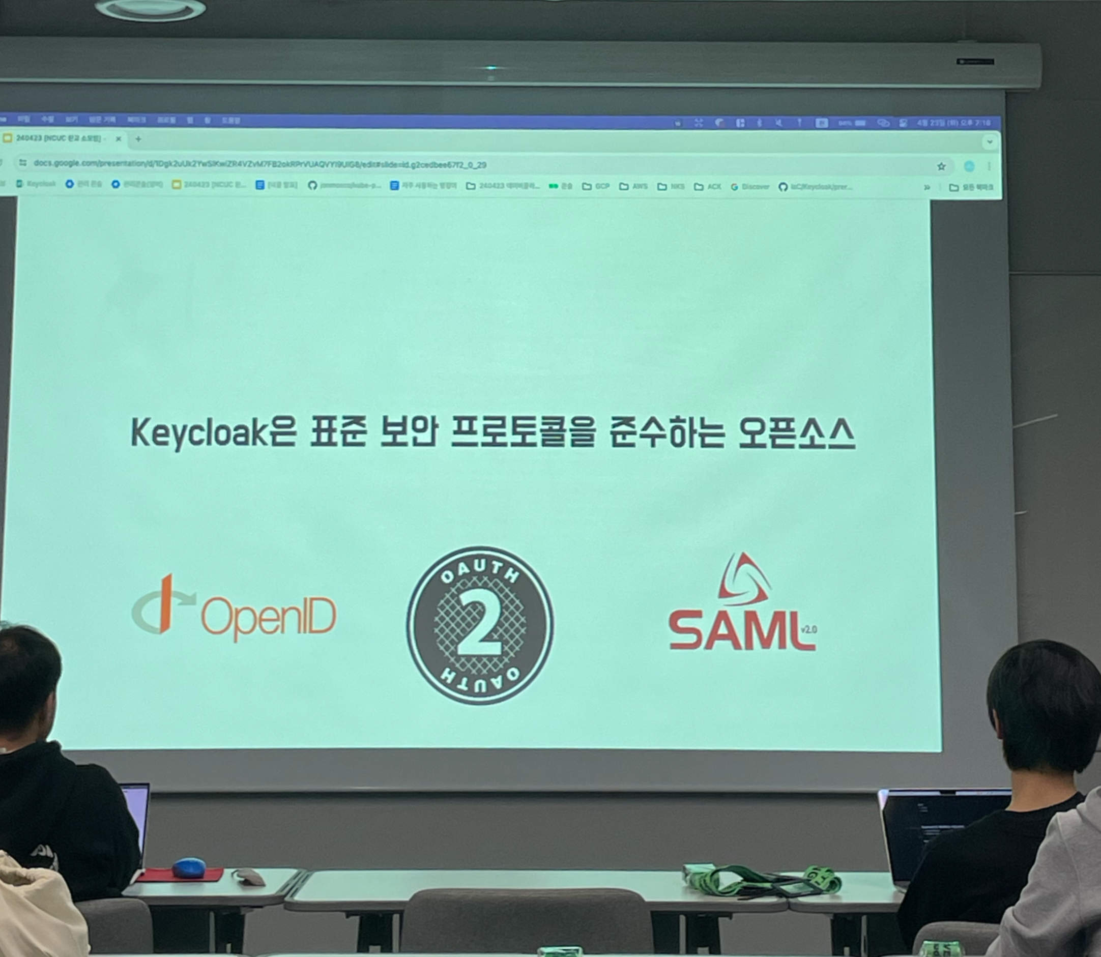 인증은 누군인지 밝히고, 확인하는 것입니다. 인가는 그 역할과 권한을 폭넓게 검증하는 것입니다. 키클락 발표의 1/3이 인증과 인가 이야기입니다. 이 개념을 알고 들어보면 좋겠네요.