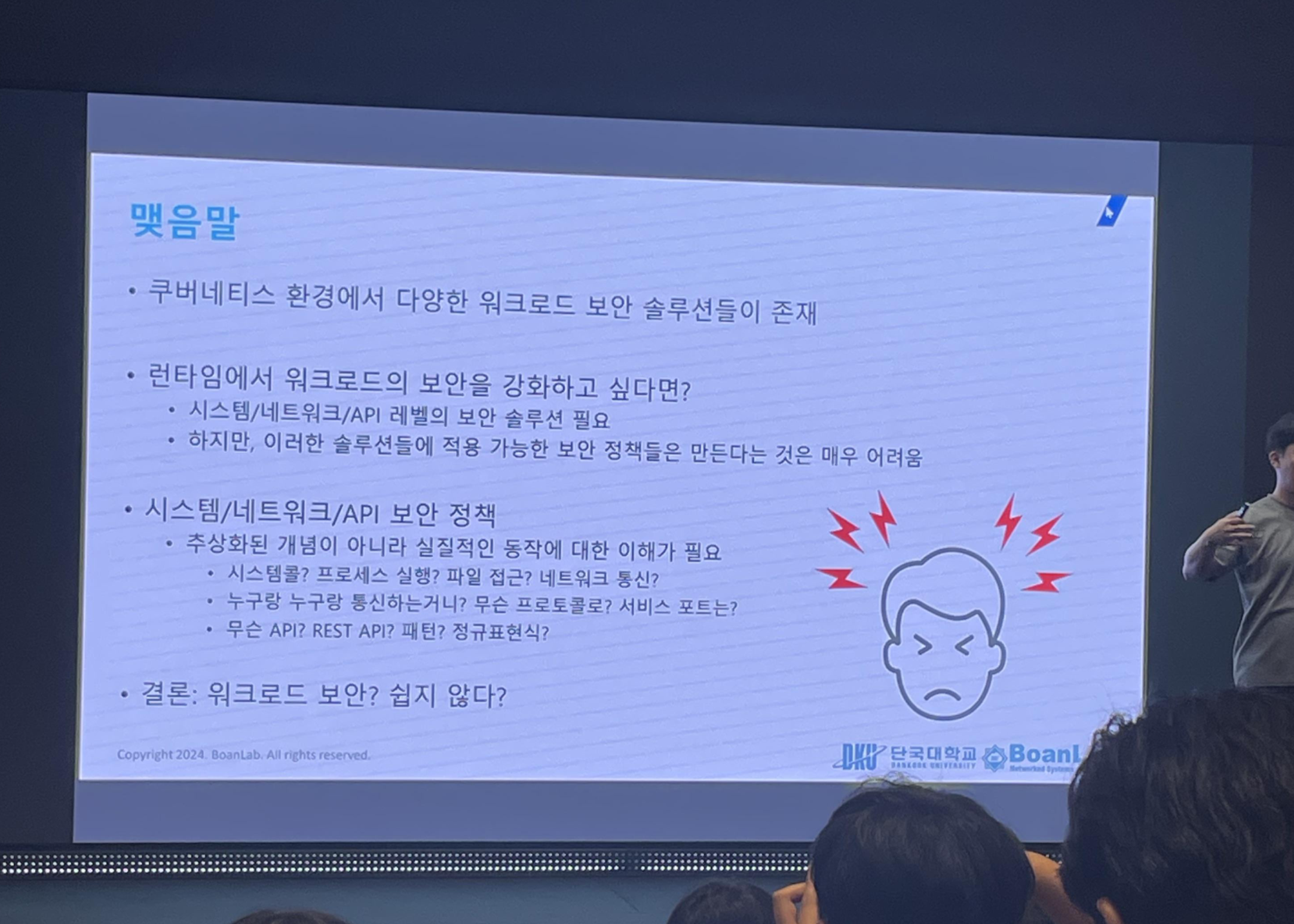 이후로, 임성일님, 남재현 교수님께서 Admission과 워크로드 보안 실사례까지 진행해주셨습니다.