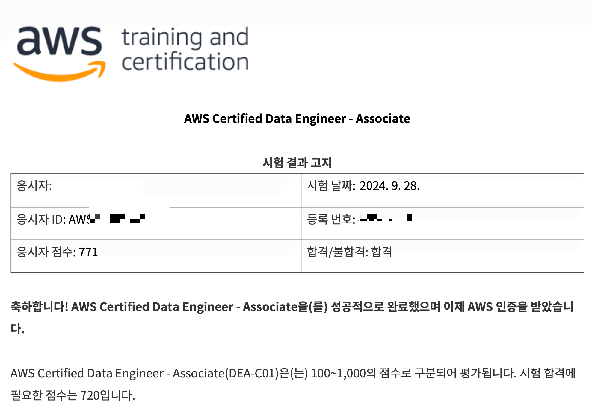 Data Engineer Associate, 한마디로 데이터 엔지니어가 갖추어야할 기본 시험입니다. 준비한지 한달남짓 되었고, DEA 스터디를 시작한다는 말을 듣고 부리나케 준비하게 된 시험입니다.