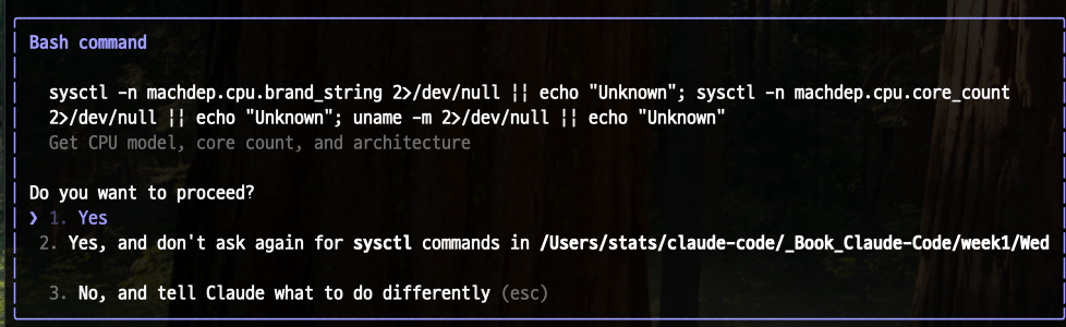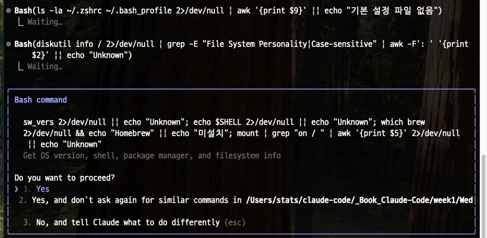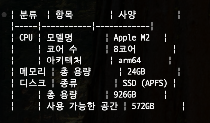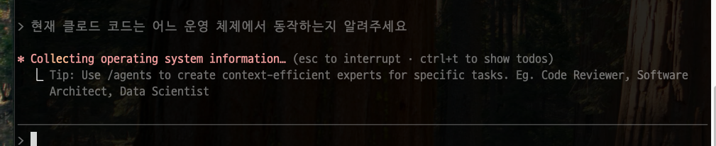 경로로 이동해서 클로드를 실행했고, 이제 내가 사용하는 랩탑 정보를 물어보겠습니다.