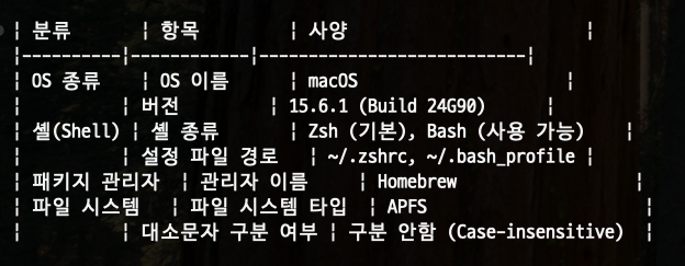최종 운영체제 결과는 다음과 같습니다. Homebrew를 활용하는 것으로 보입니다.