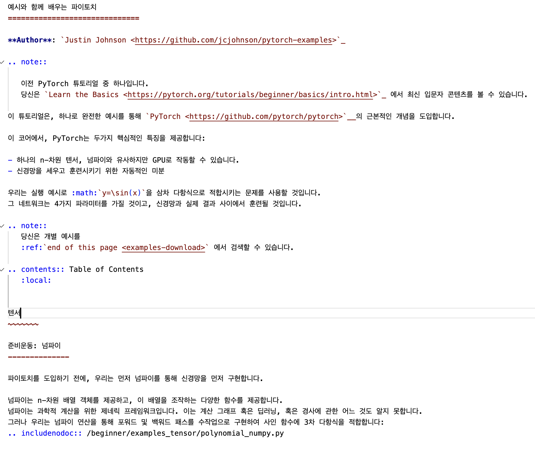 이 상태에서, index.html 파일에는 적용이 되지 않았습니다. 찾아본 결과로는 .rst 파일을 수정하면, make 명령어로 빌드를 수행하고 다시 확인해봐야한다고 합니다.