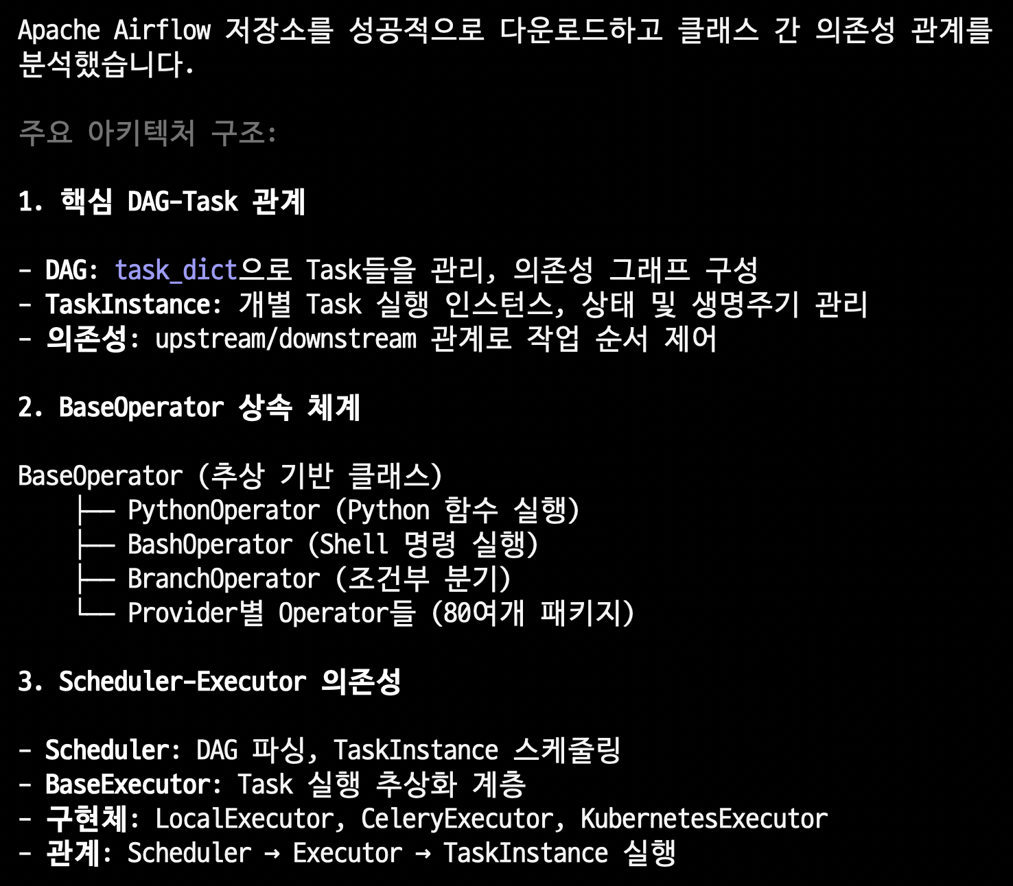 "에어플로우 저장소를 내려받고, 클래스 간 의존성 관계를 파악해주세요. 주소는 https://github.com/apache/airflow 입니다"