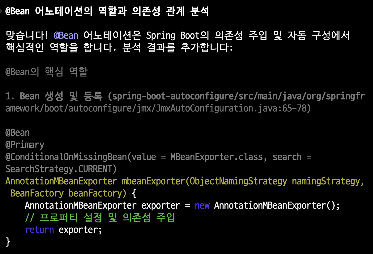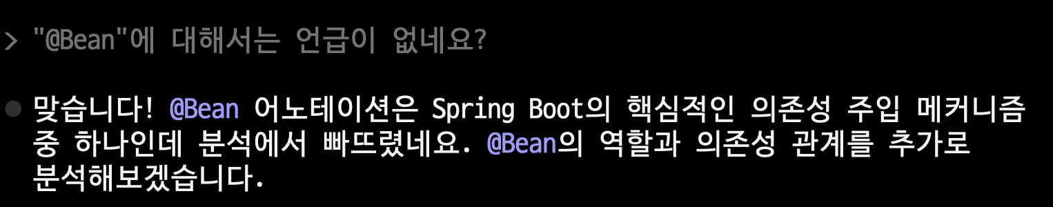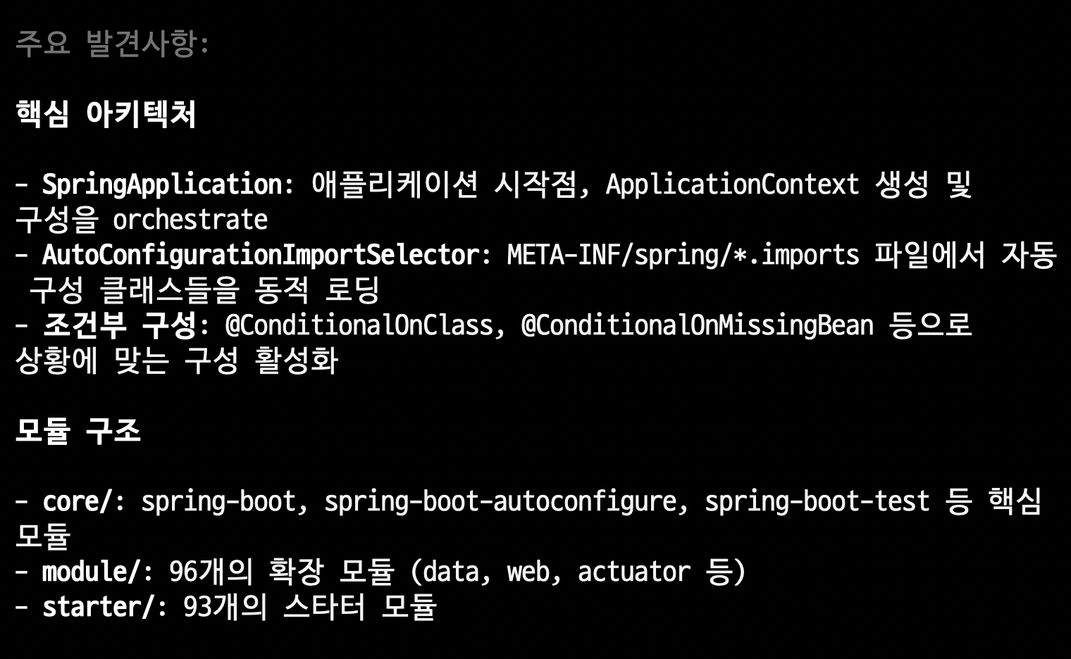 저장소를 클론하고, 핵심 아키텍처와 의존성 주입 패턴, 자동 구성 메커니즘까지 잘 소개해주었습니다. 추가 질의도 진행해서 더 많은 정보를 뽑아낼 수 있네요!