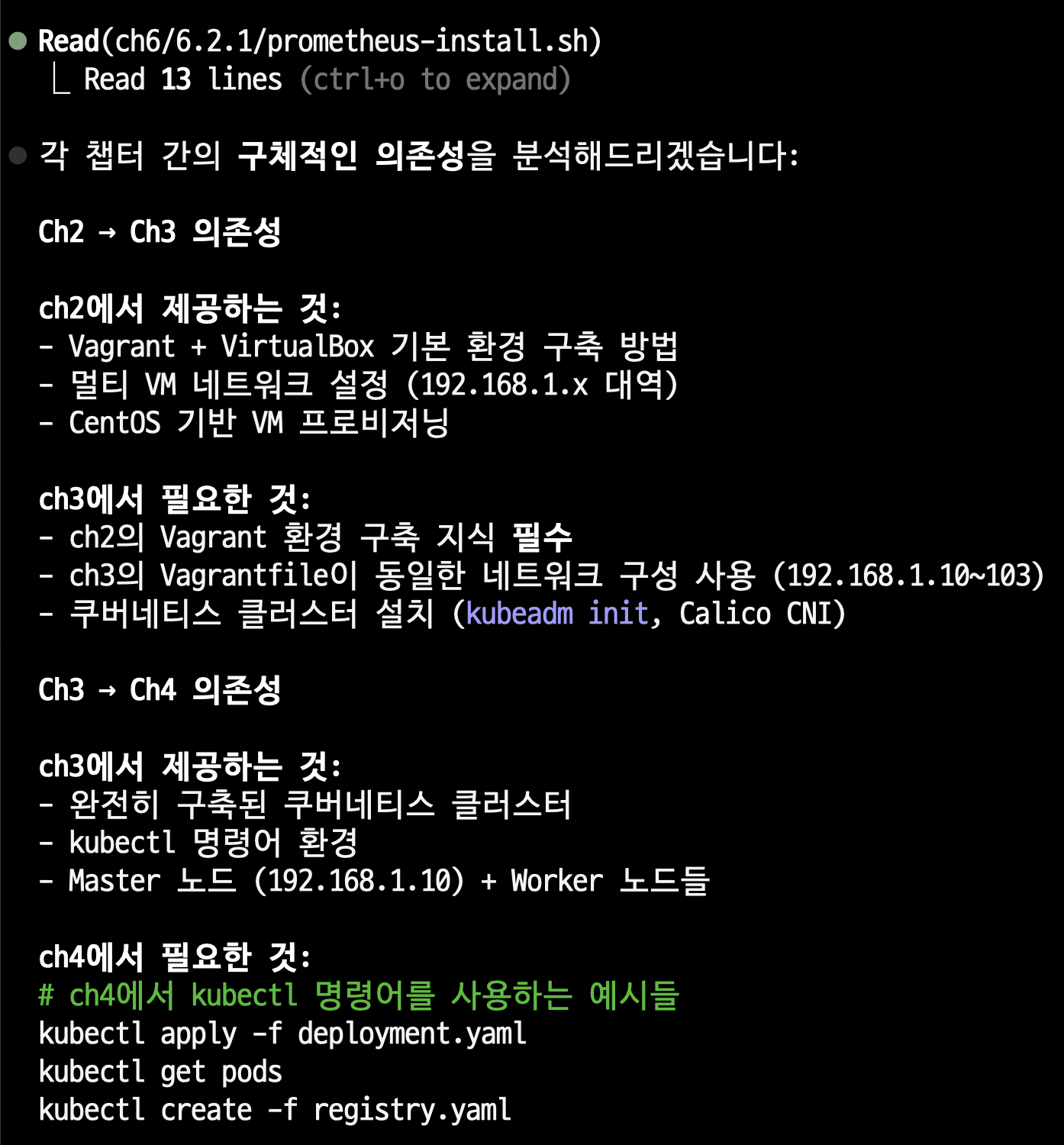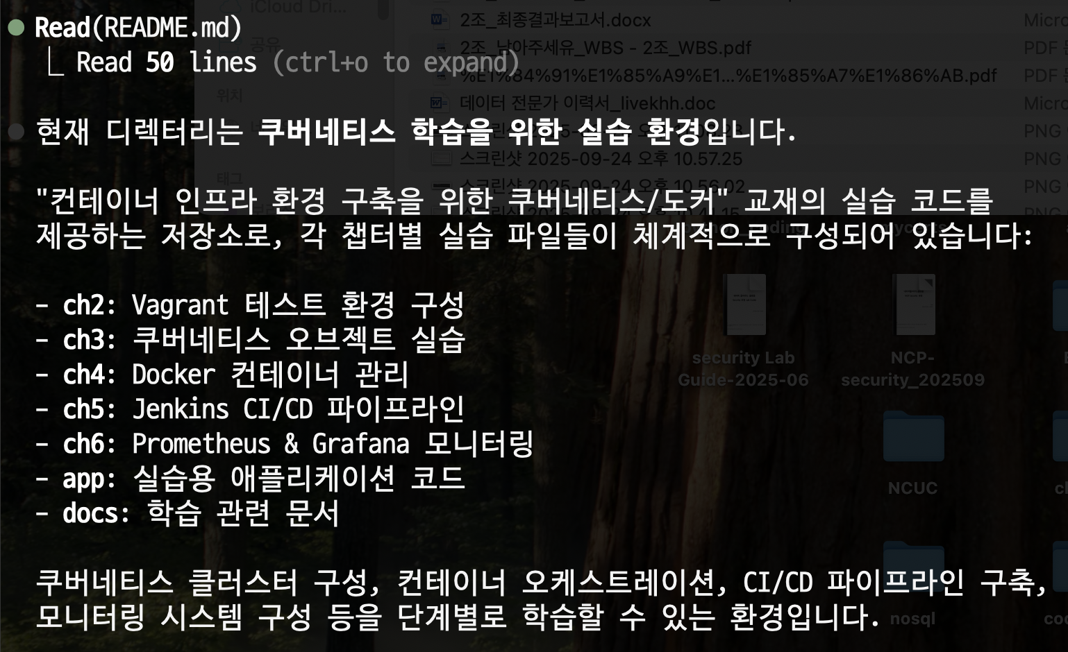 이것을 그대로 작성해보니, 클로드 코드가 대략적으로 잘 설명해줍니다. 오른쪽은 구체적으로 각 항목을 설명해달라는 결과입니다.