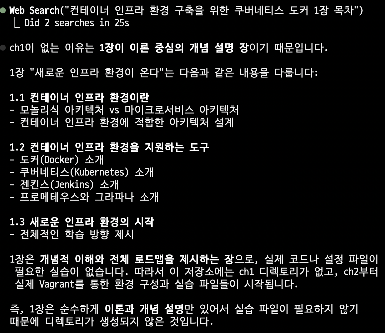 프롬프트를 바꾸기만해도, 각 항목을 잘 설명해주어 편리합니다. 다만 없는 챕터가 있는데, 이것을 물었습니다.