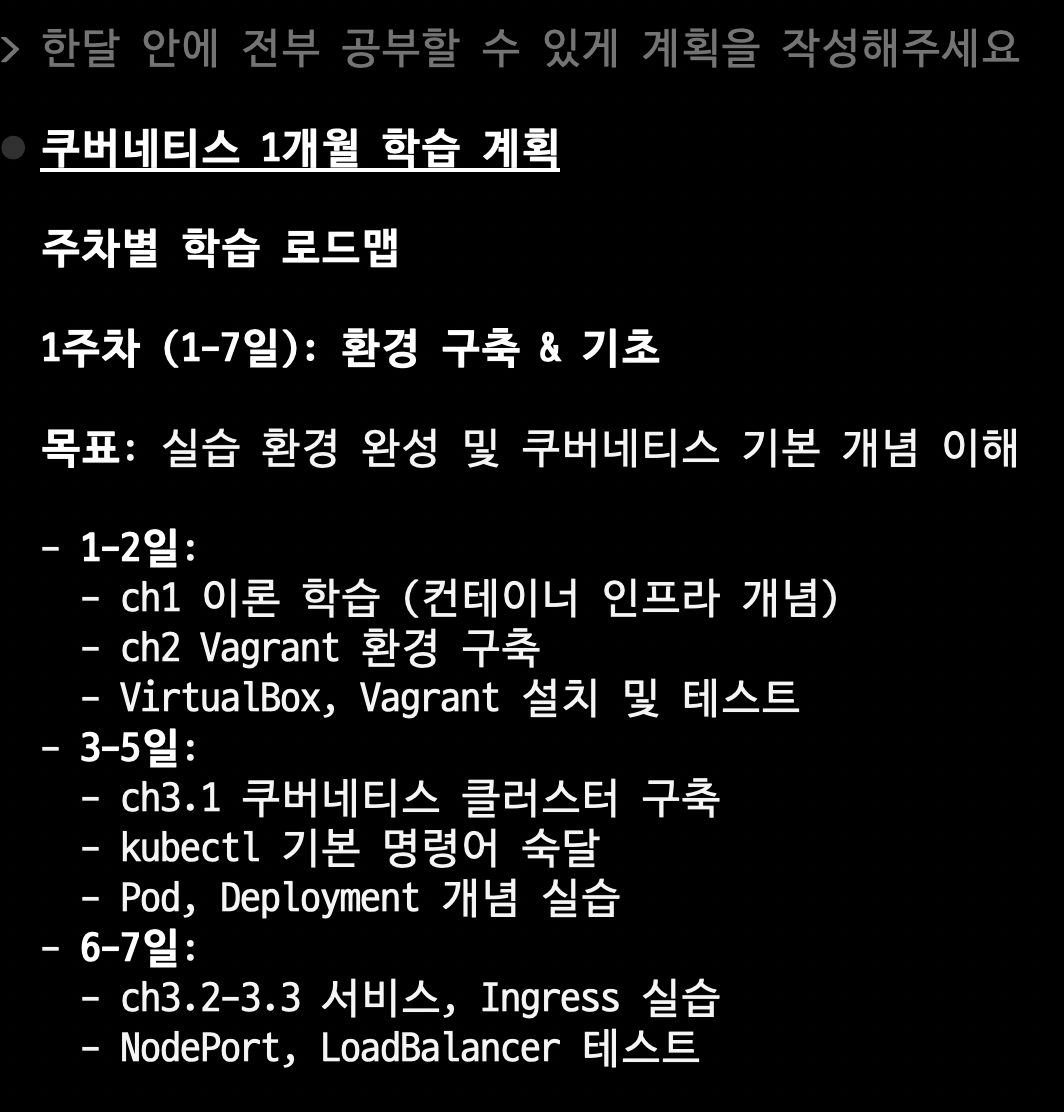 "한달 안에 전부 공부할 수 있게 계획을 작성해주세요."