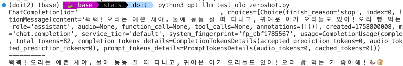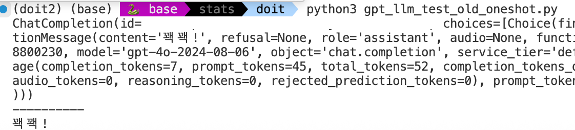 이제야 비로소 "꽥꽥!" 이라는 답변만 나오네요. 예시를 넣는 프롬프트, 자주 사용하는 것이 꿀팁입니다.