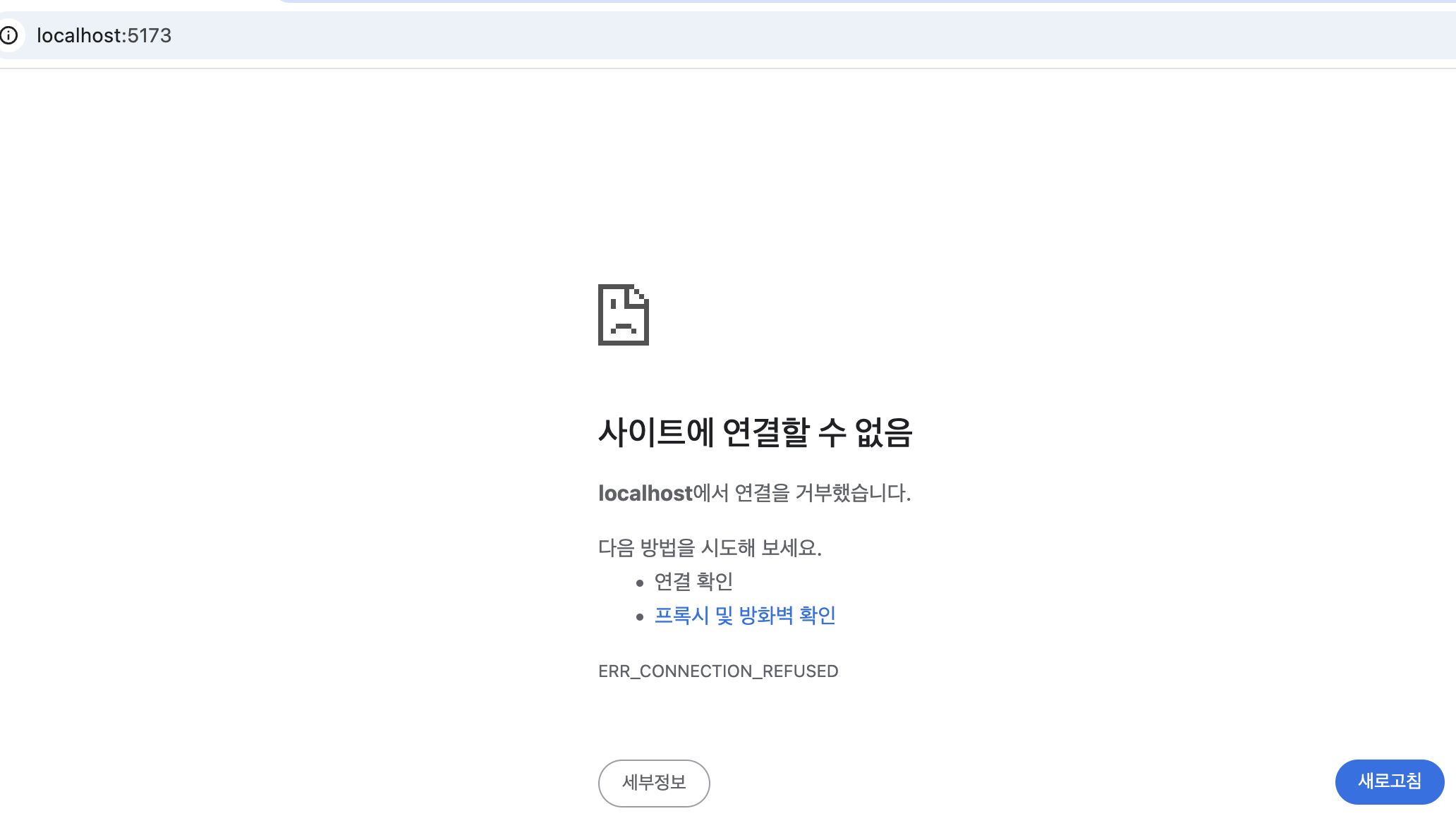 개발이 완료되어 실행되면, 제시된 주소로 접속합니다. http://localhost:5173 로 접속합니다.