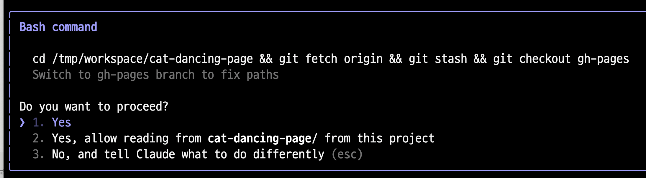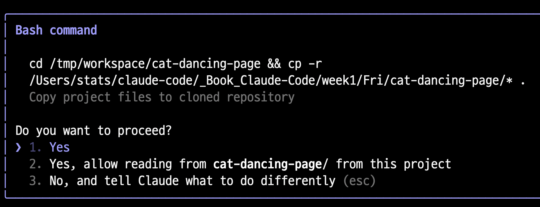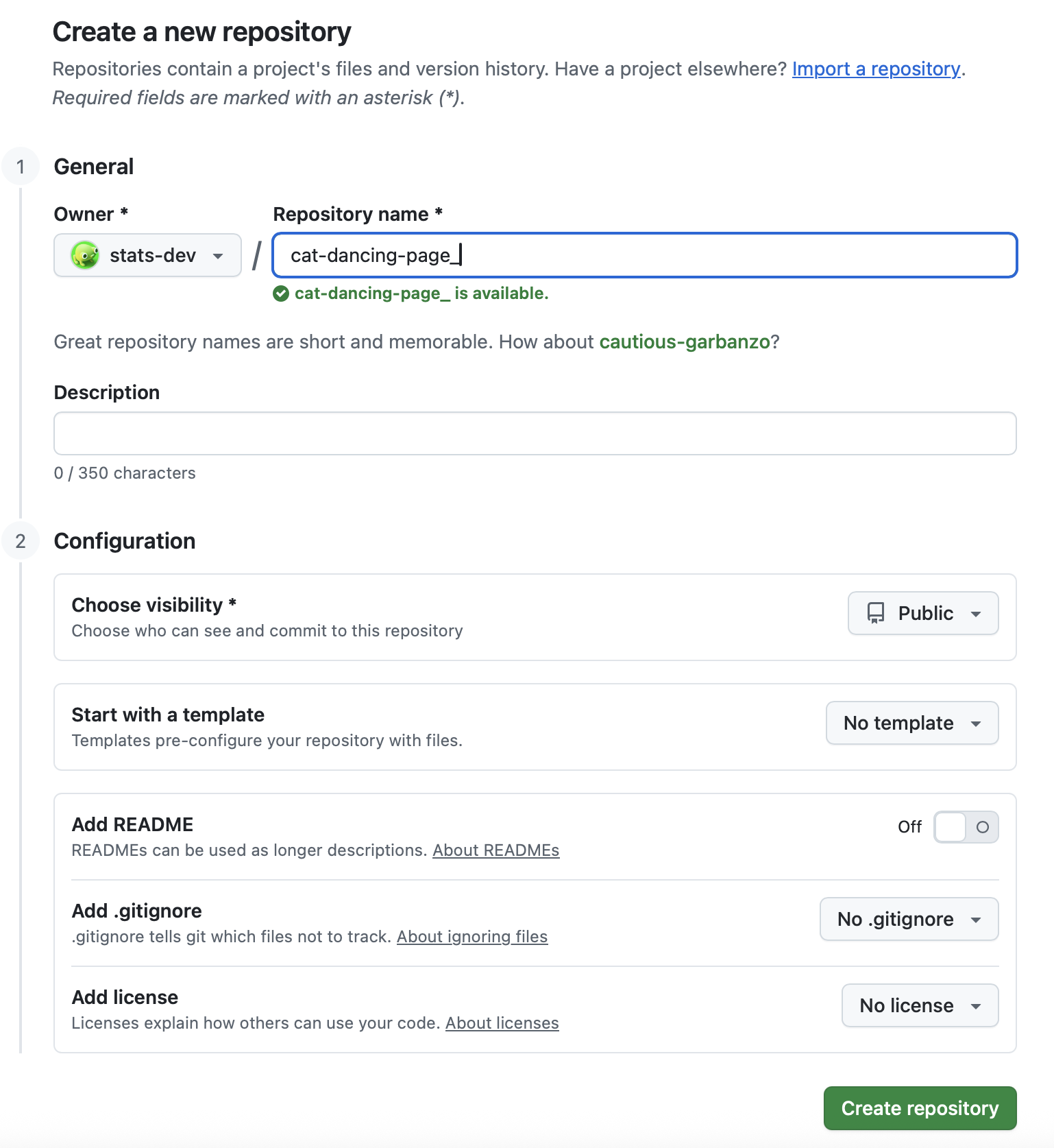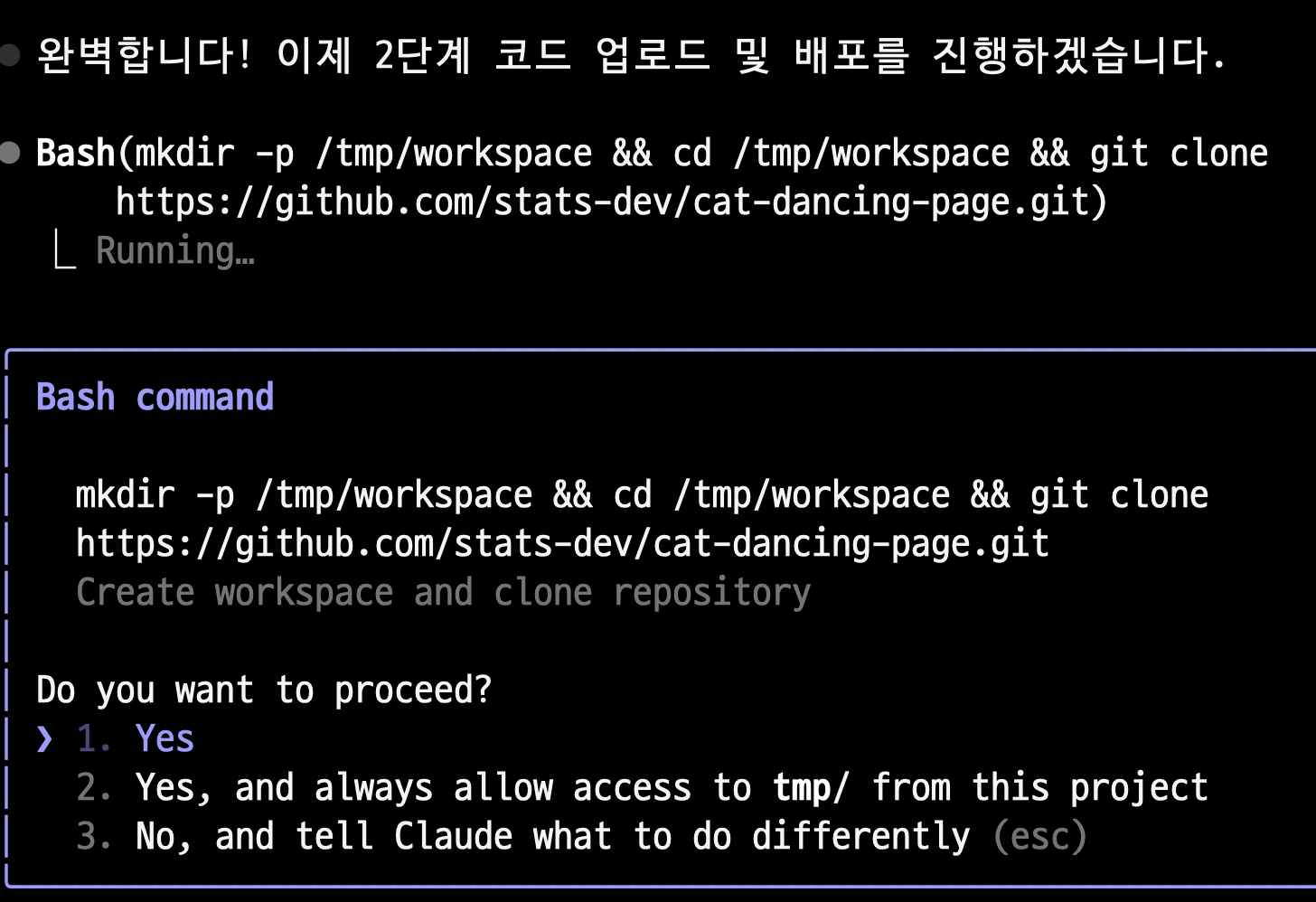 "저장소 주소는 "https://github.com/stats-dev/cat-dancing-page.git". 2단계를 실행해줘요"