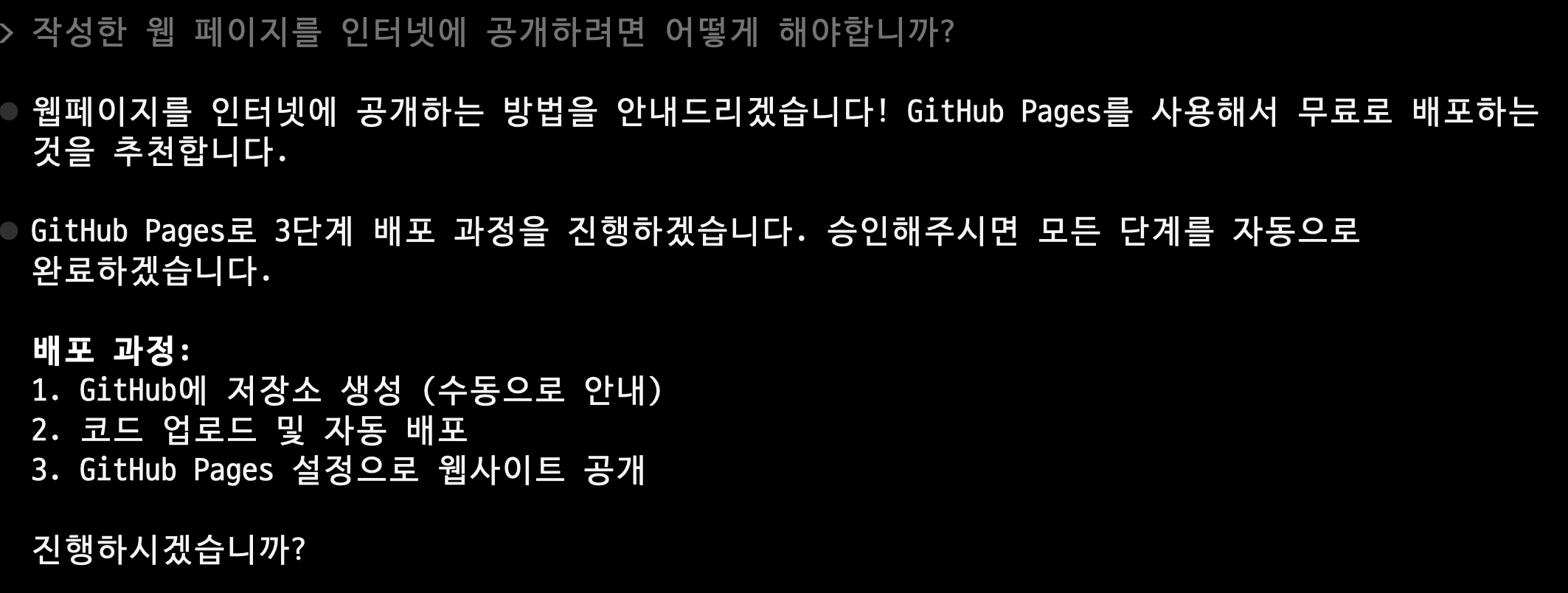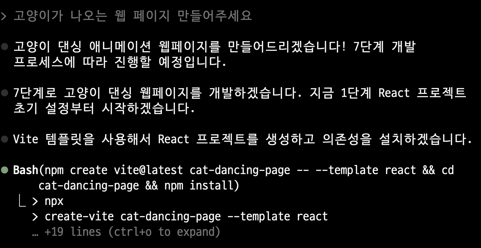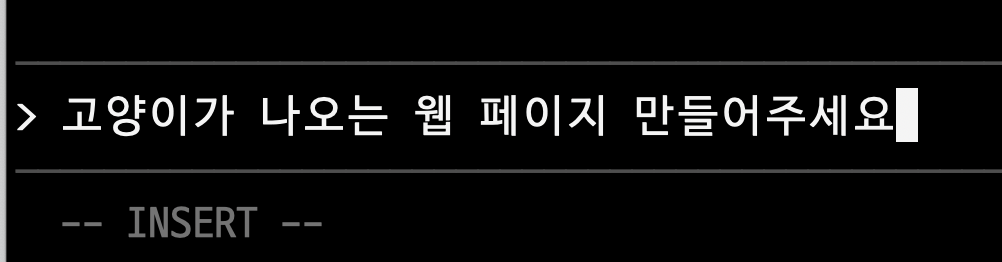 "고양이가 나오는 웹 페이지 만들어주세요" 입력합니다.