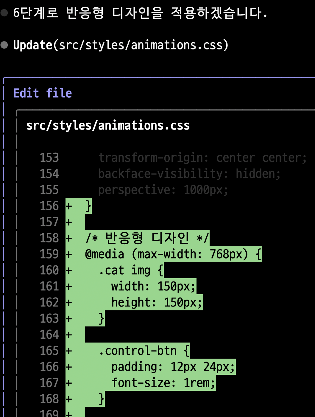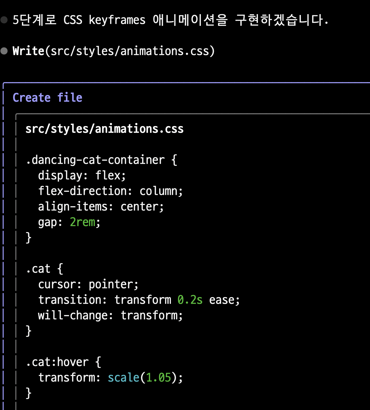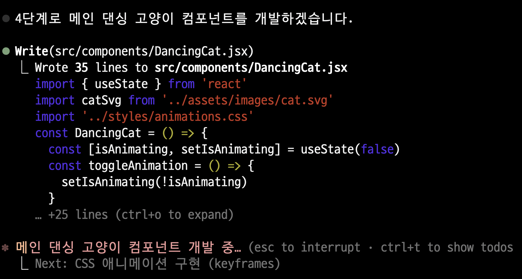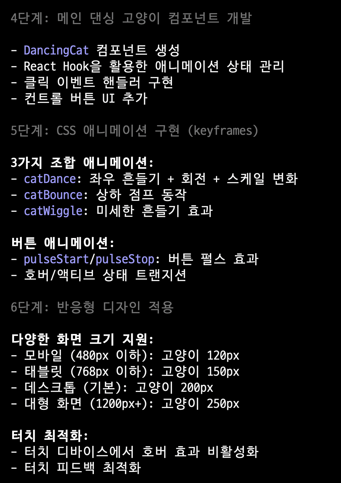 4단계: 메인 댄싱 고양이 컴포넌트를 개발합니다.