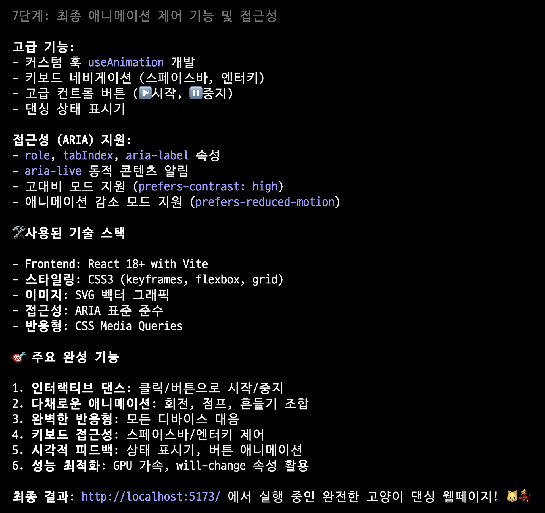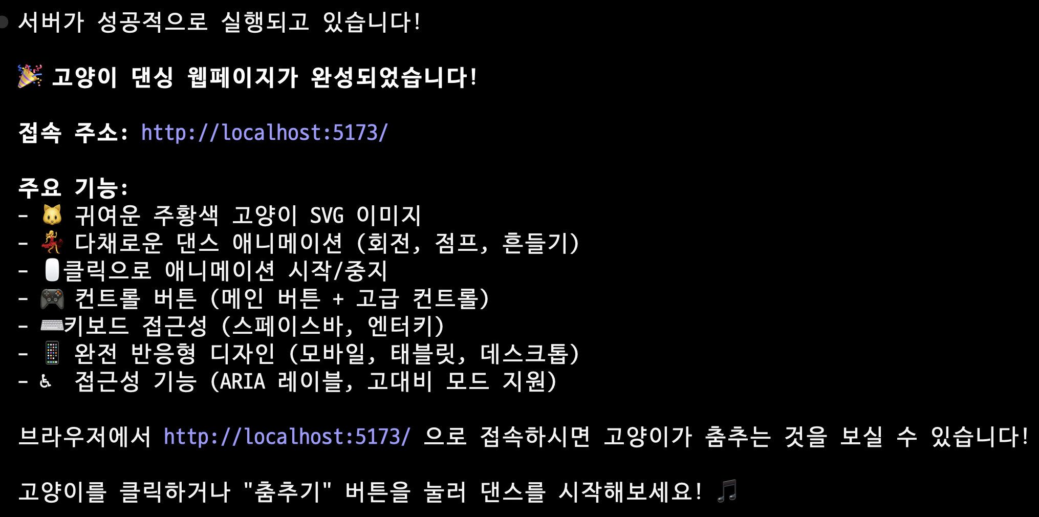 이렇게 짧지만 굵게, 클로드 코드를 활용해서 고양이가 춤추는 화면을 구성하고, 깃허브 페이지로 배포를 완료했습니다.