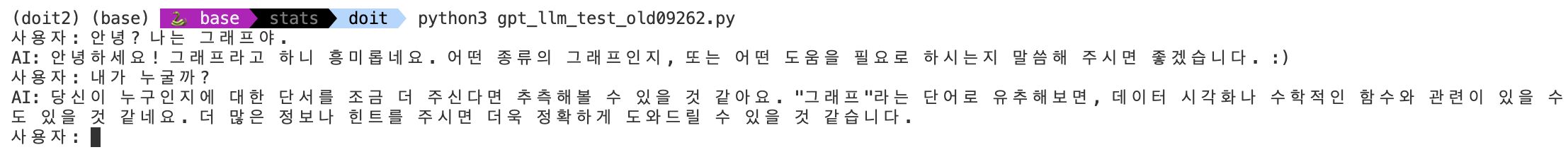 실행해보니, Graph라는 이름을 제시해도, 이후에 물어볼 때는 내 이름을 기억하지 못합니다.