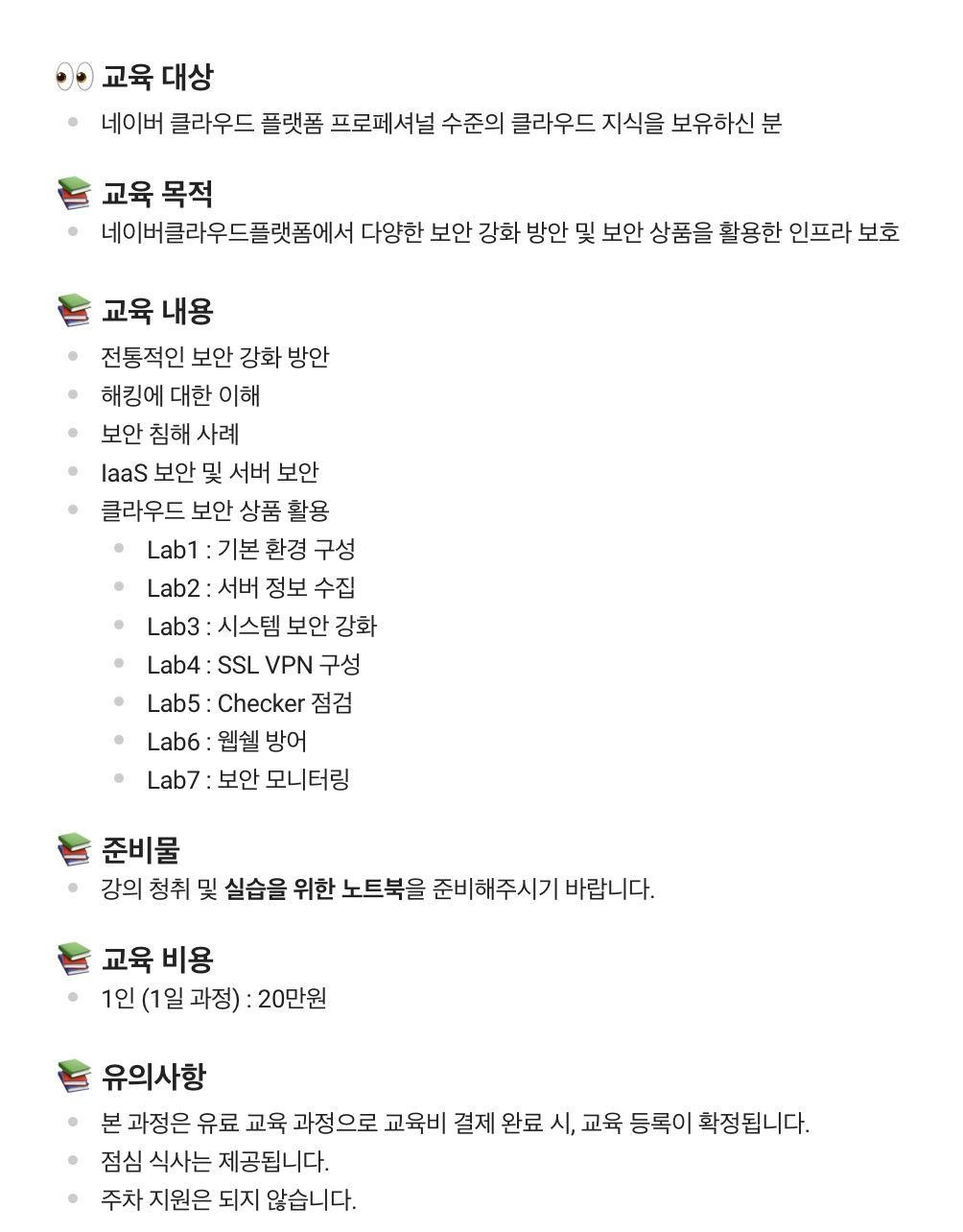 보안의 중요성이 계속 커지고 있습니다. 기존 Legacy 보안과 네이버클라우드에서 보안 상품을 함께 고려할 수 있는 전문가로 성장하시기를 기대합니다.