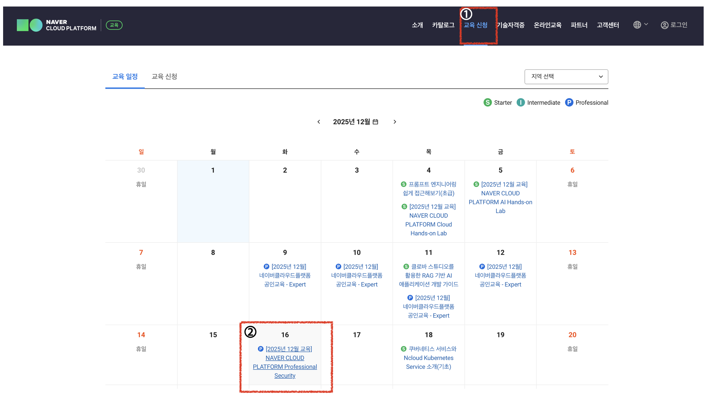 아래 네이버클라우드 교육 포털에서, 공인 교육을 눌러주고, 다음 버튼을 눌러 결제 후 공인 교육 신청을 완료합니다. 이후에 안내된 곳에서 교육을 수강합니다.