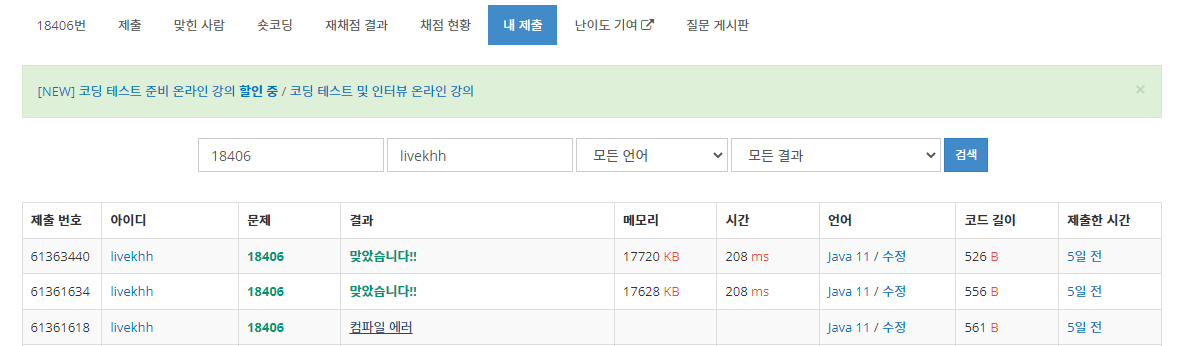 백준에서 코드를 입력할 때, Java의 경우에는 Scanner 패키지를 사용해서 입력값을 받도록 만들어줘야 합니다.
