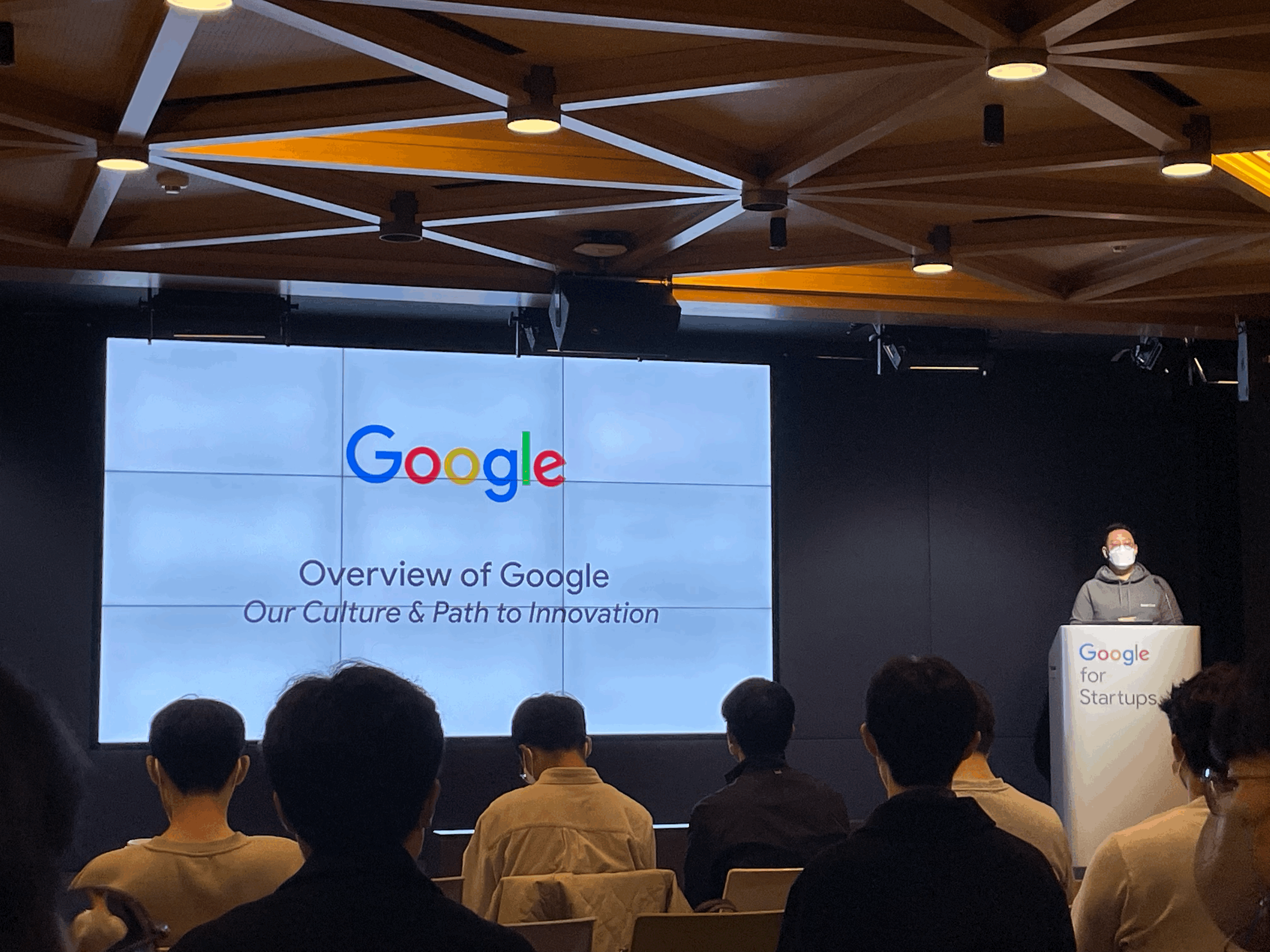 구글 클라우드 쿠브님의 구글 스토리이다. 장소 후원사 대표로, 구글 기업 문화를 소개하며 첫 세션을 시작했다.