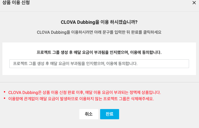 CLOVA Dubbing 으로 만들어진 콘텐츠에는 반드시 Clova Dubbing 을 활용하여 만들었다는 부분이 명시되어야 합니다.