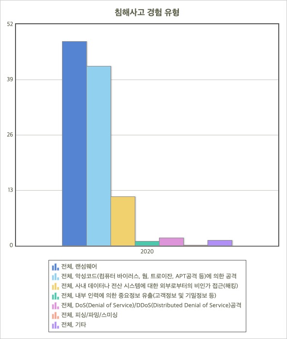 과학기술정보통신부,「정보보호실태조사」, 2020, 2023.08.06, 침해사고 경험 유형