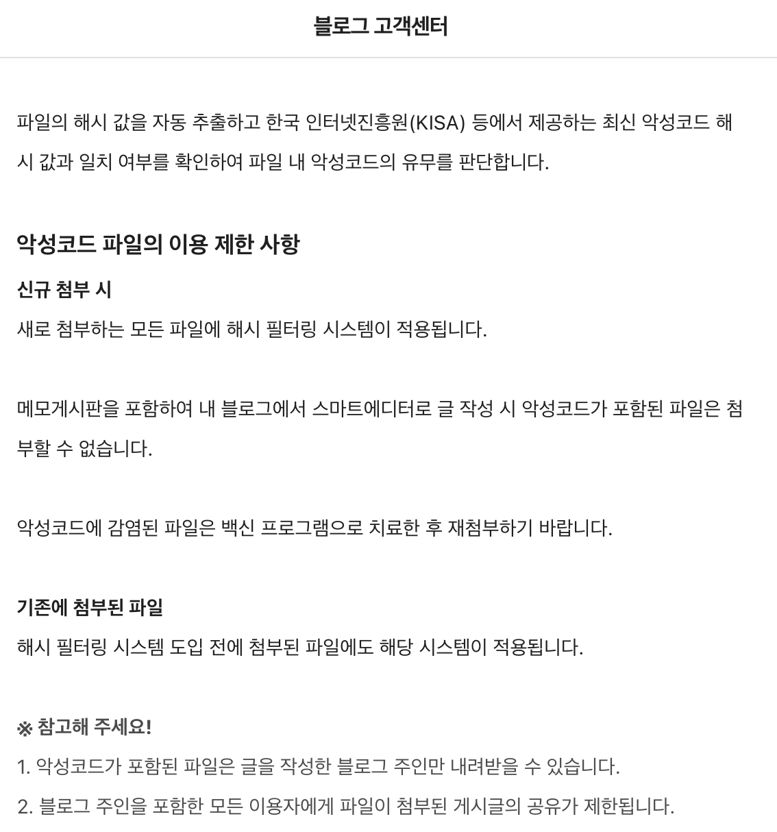 악성코드 파일 제한 안내 : 블로그 고객센터