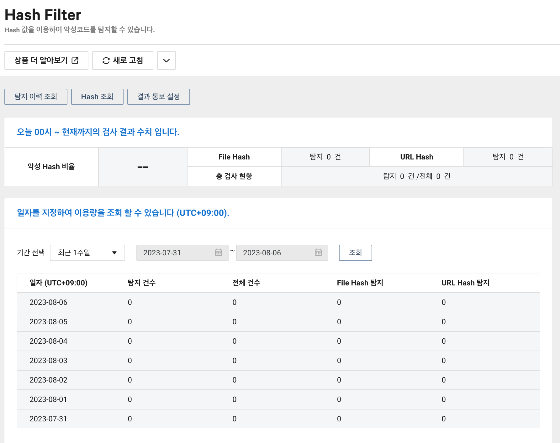 신청하고 나면, 이용 신청 중으로 변경되며, Hash Filter, File Filter, Notification setting, Subscription 메뉴가 있습니다. 이번 글에서는 Hash Filter를 알아보겠습니다.