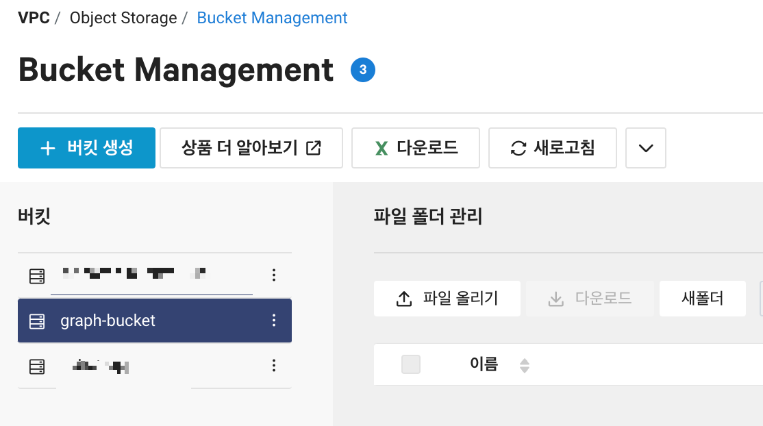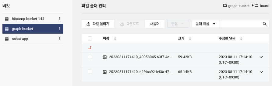 이제 Bucket Manangement에서 graph-bucket을 보시면 두개의 이미지가 올라온 것을 확인할 수 있습니다. 잘 연동된 것입니다.