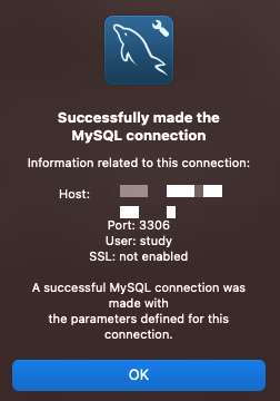 생성 후 Test connection을 누르면, 아래처럼 성공적으로 연결되었다고 뜨면 OK를 누르고 적용합니다.