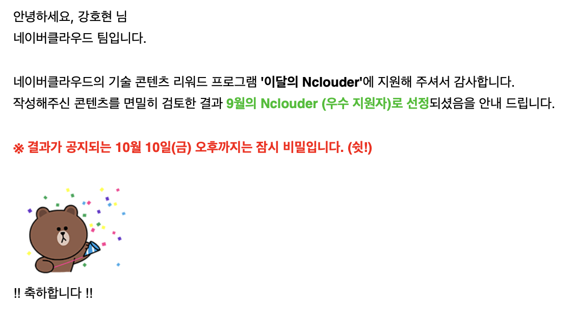 결론부터 말씀드리면, 5월과 9월 최초 2회 "이달의 NCLOUDER"로 선정되었습니다.