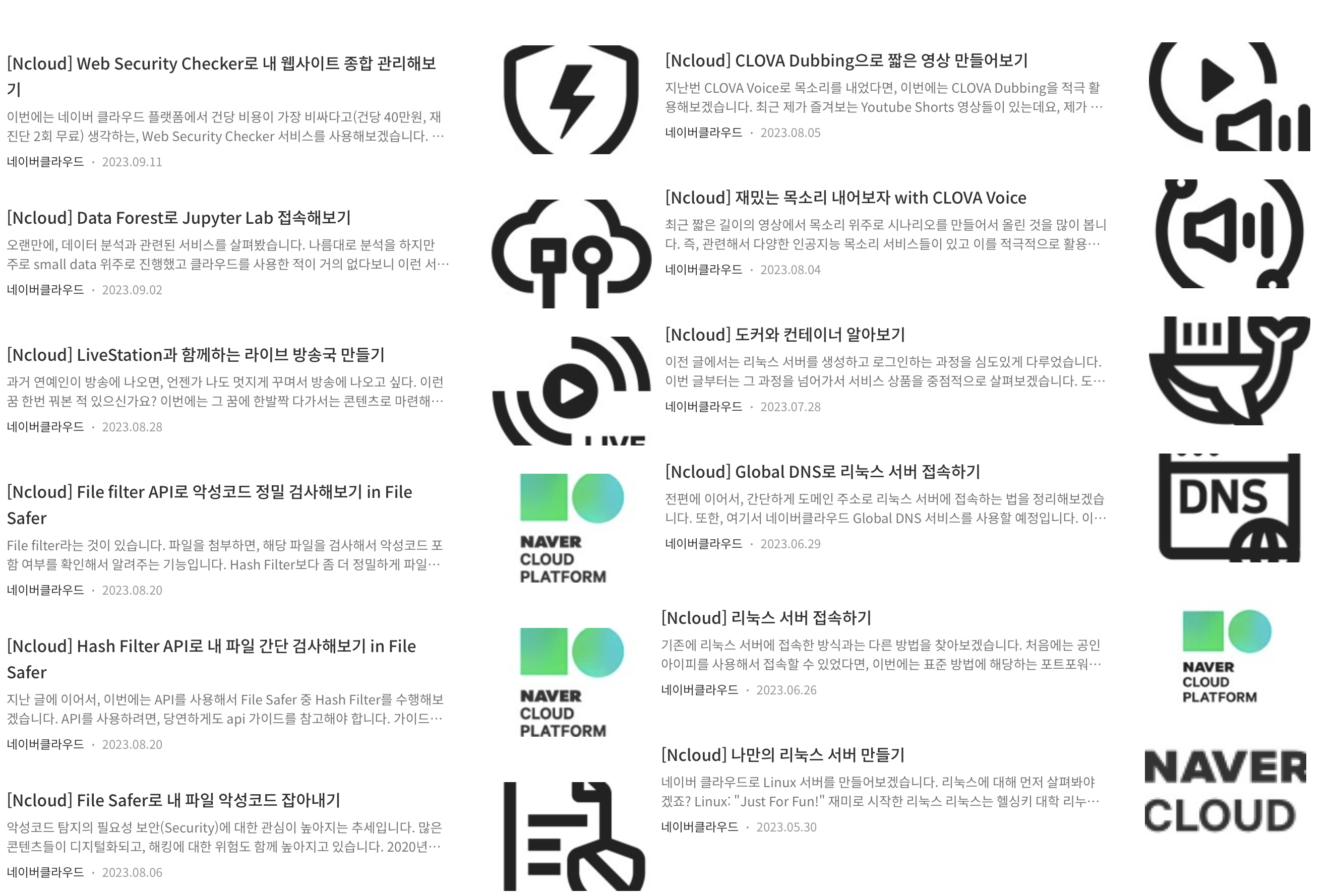 올해 네이버 클라우드를 사용하면서 정성껏 작성한 게시물들이 있습니다. 모든 시작은 이달의 Nclouder라는 네이버 클라우드 기술 콘텐츠 리워드 프로그램이었습니다.
