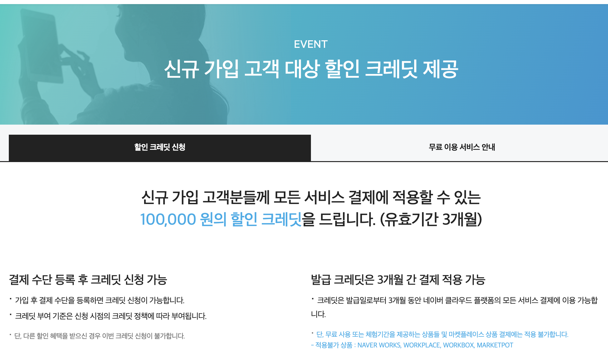 1. 신규 가입 후 결제 수단 등록시 제공되는 10만원 크레딧