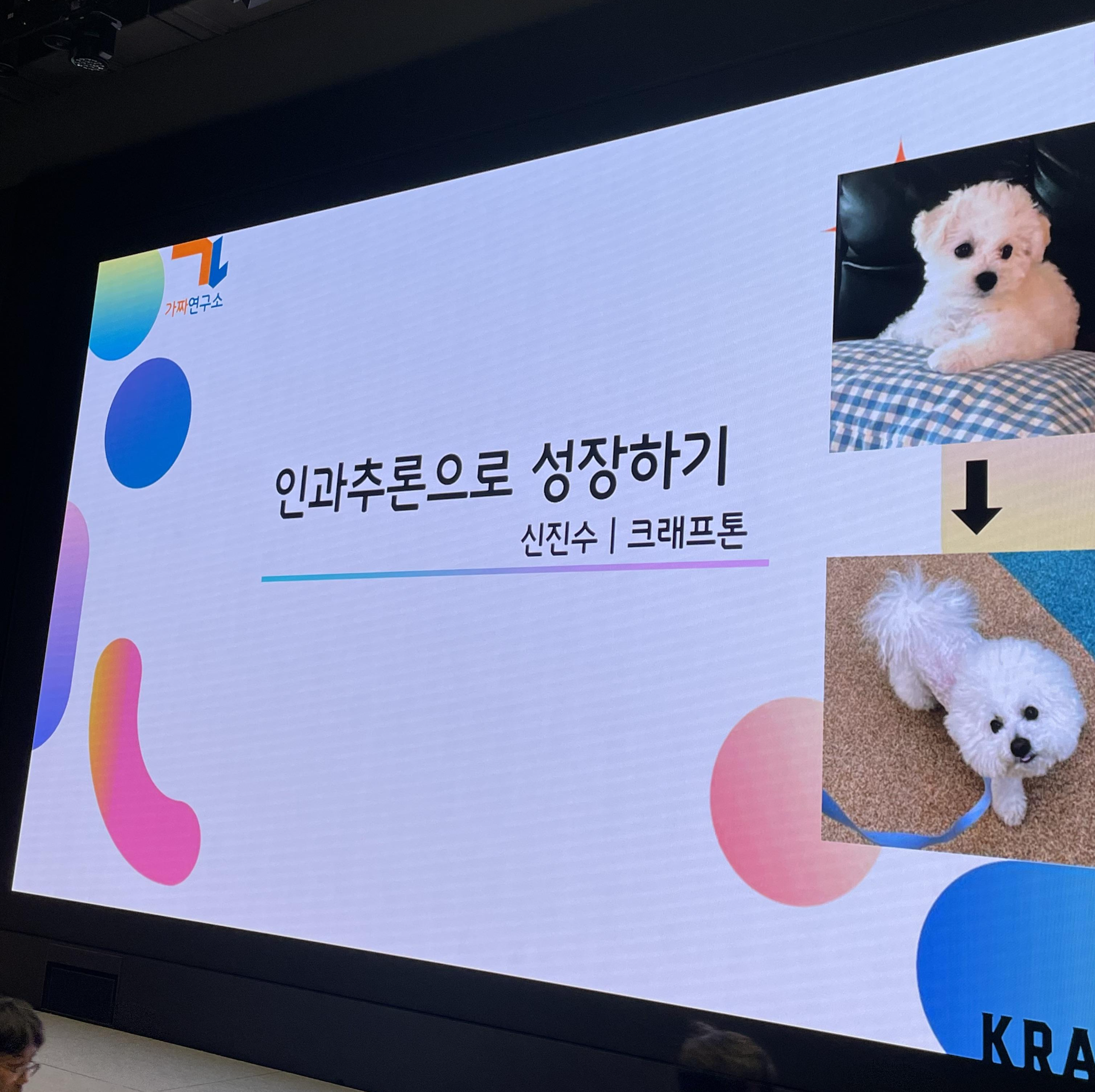 마지막은 인과추론 팀 크래프톤의 신진수님 세션입니다. 피날레를 장식하는 중요한 세션이죠. 먼저는 인과추론팀을 소개하며, 인과추론으로 성장하는 것이 무엇인지, 무려 20개월간 진행한 인과추론팀의 비결을 들을 수 있었습니다.
