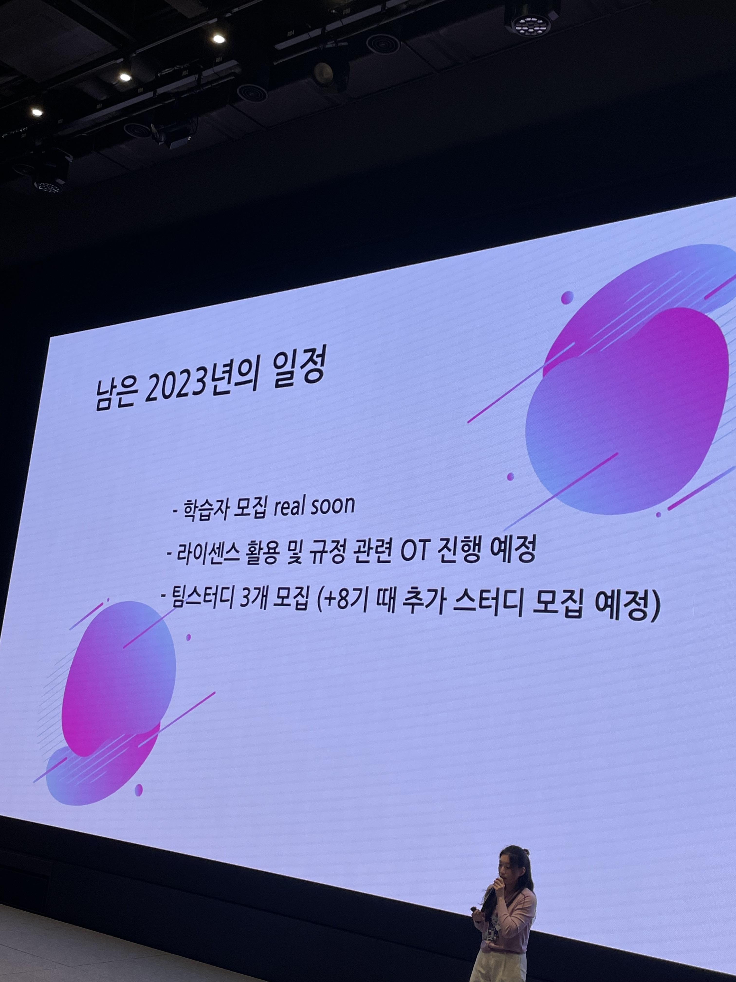 다음으로, 잘 안되도 꾸준히 해야합니다. 인간 관계도 일도 스터디도 다같이 진행하려면 매우 힘듭니다. 모든게 잘 되는게 더 이상하죠. 그냥 하는 겁니다. 꾸준히 하는 것이 제일 중요합니다. 도중에 그만두고 싶은 적도 많다고 합니다. 근데, 꾸준히 하다보면 무언가 방향이 보입니다. 결과도 자꾸 무언가 나옵니다. 그래서 힘들어도, 잘 안되어도, 매주 주말마다 2시간씩 시간내어 스터디를 운영한다고 합니다.