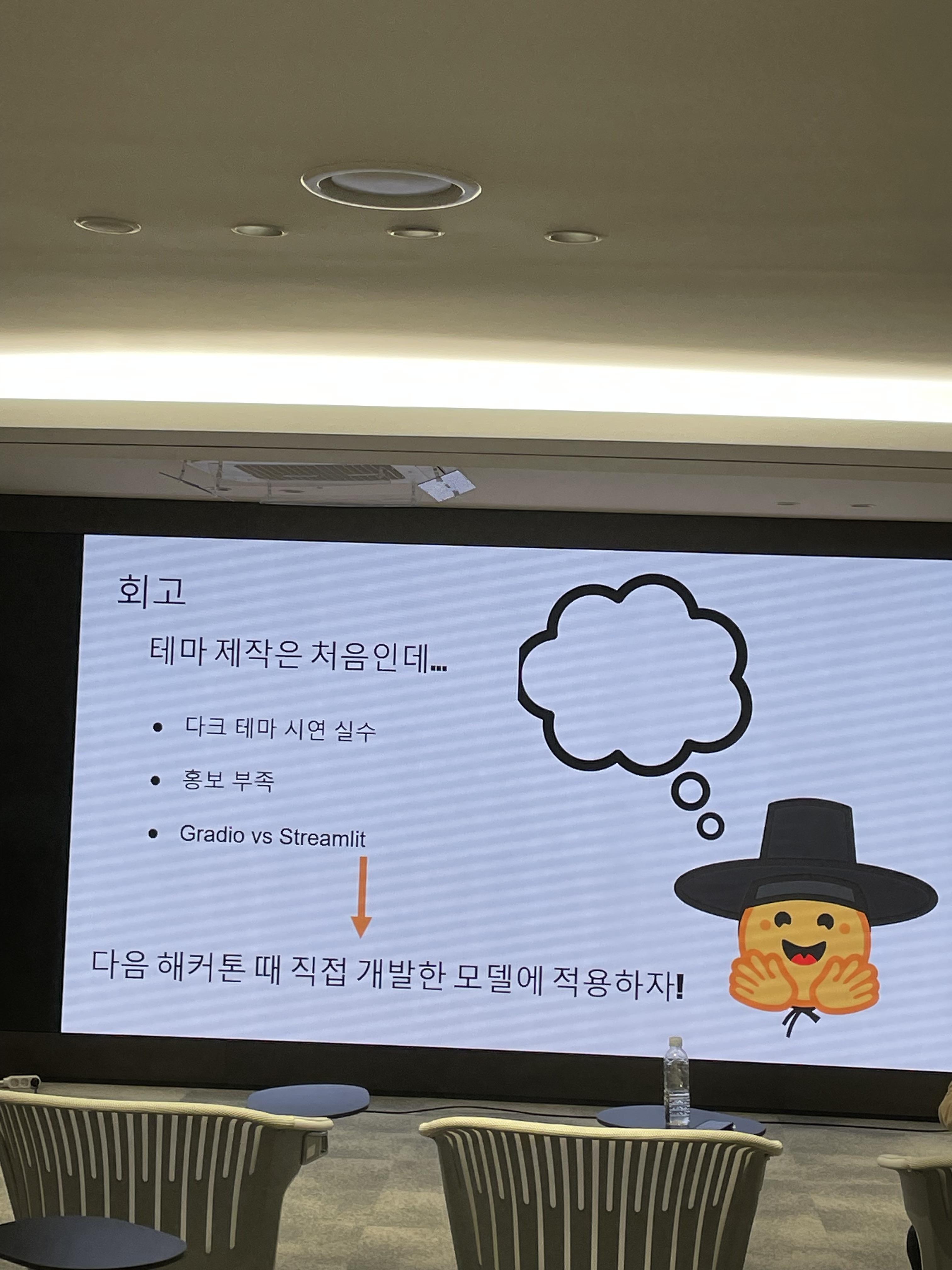 저도 잠깐 참여해봤는데요. Gradio, Streamlit 등 다양한 포맷으로 space를 만들어서, 제공된 GPU 자원을 바탕으로 간단한 AI 앱을 만들어 볼 수 있었습니다. 또한, 다른 참가자 분들의 번뜩이는 아이디어들을 보면서 눈이 즐겁고 많이 배워갈 수 있는 시간이었습니다.