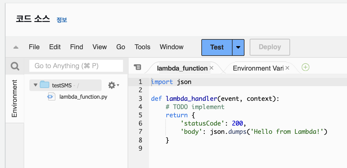 이렇게 Python으로된 Handler 메서드를 잘 채워주고, 중간에 휴대폰번호를 입력해주면 됩니다.