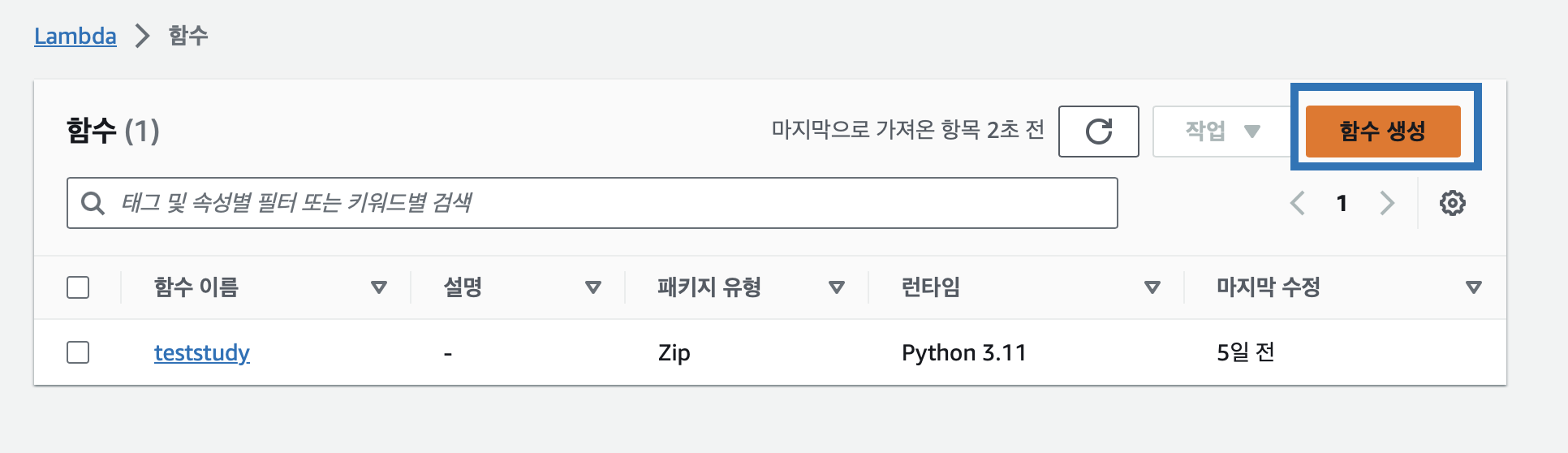 그리고 함수 생성버튼을 누릅니다. 생성이 완료되면, 아래와 같은 다이어그램이 나타납니다.