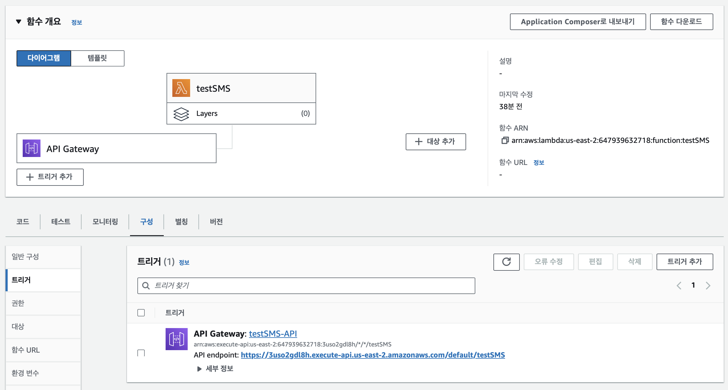 최종적으로 람다 함수 구조는 아래와 같이 설정하고, 아래 트리거도 확인할 수 있습니다.
