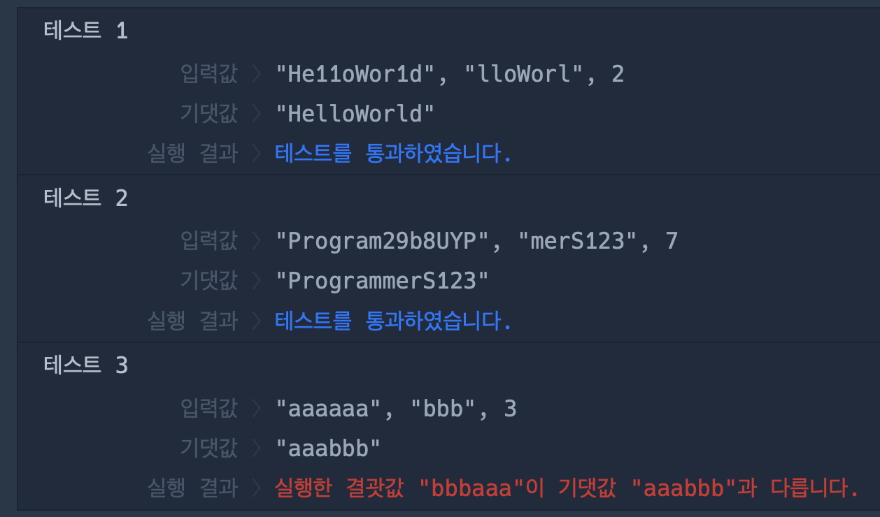 문제는 my_string에서 s번째 인덱스부터 overwrite_string으로 치환하는 문제다. 그런데 replace 메서드는 앞에서부터 찾아서 바꾸므로, 주어진 인덱스부터 바꾸는 것이 적용되지 않는 경우가 생긴다.