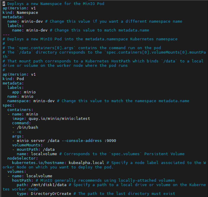 kubectl apply -f minio-dev.yaml