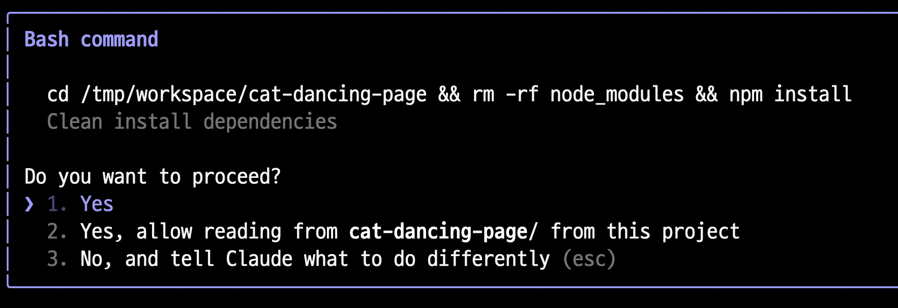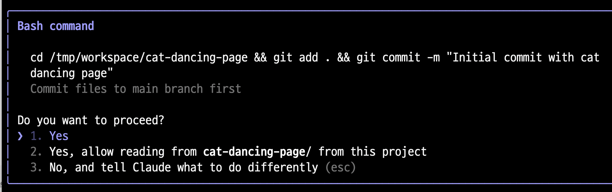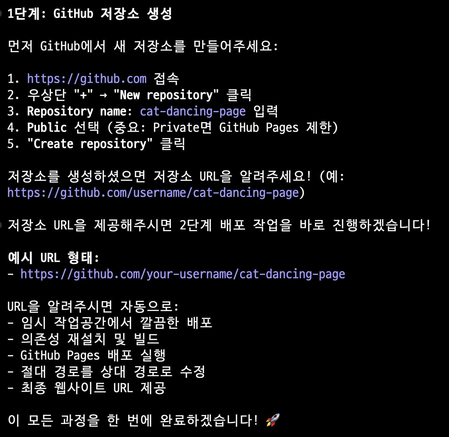 "저장소 주소는 "https://github.com/stats-dev/cat-dancing-page.git". 2단계를 실행해줘요"
